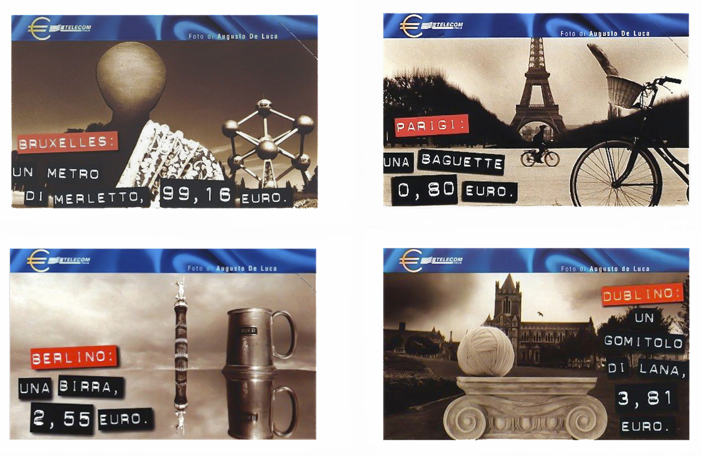 È stata indubbiamente una stupenda esperienza, che mi ha anche permesso di conoscere appieno queste stupende capitali europee. Devo ammettere che avendo un discreto budget economico, ne ho approfittato, assaggiando nei migliori ristoranti le diverse cucine locali. Il risultato? Un bel lavoro ma anche qualche chilo in più. Le schede con immagini di Parigi, Bruxelles, Dublino, Berlino sono le prime nuove schede telefoniche con il valore facciale espresso in lire e in euro e sono stata emesse nel 1999.