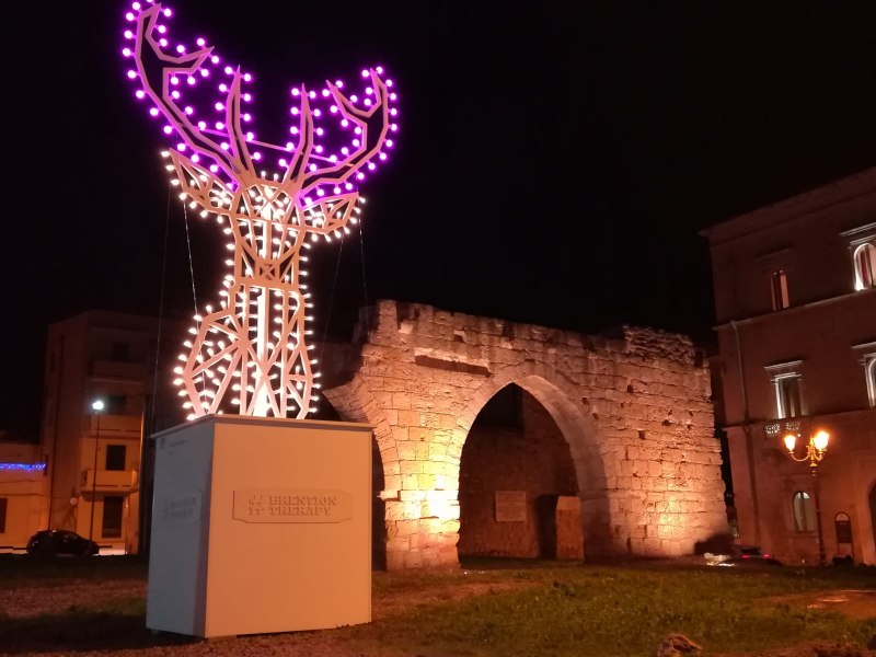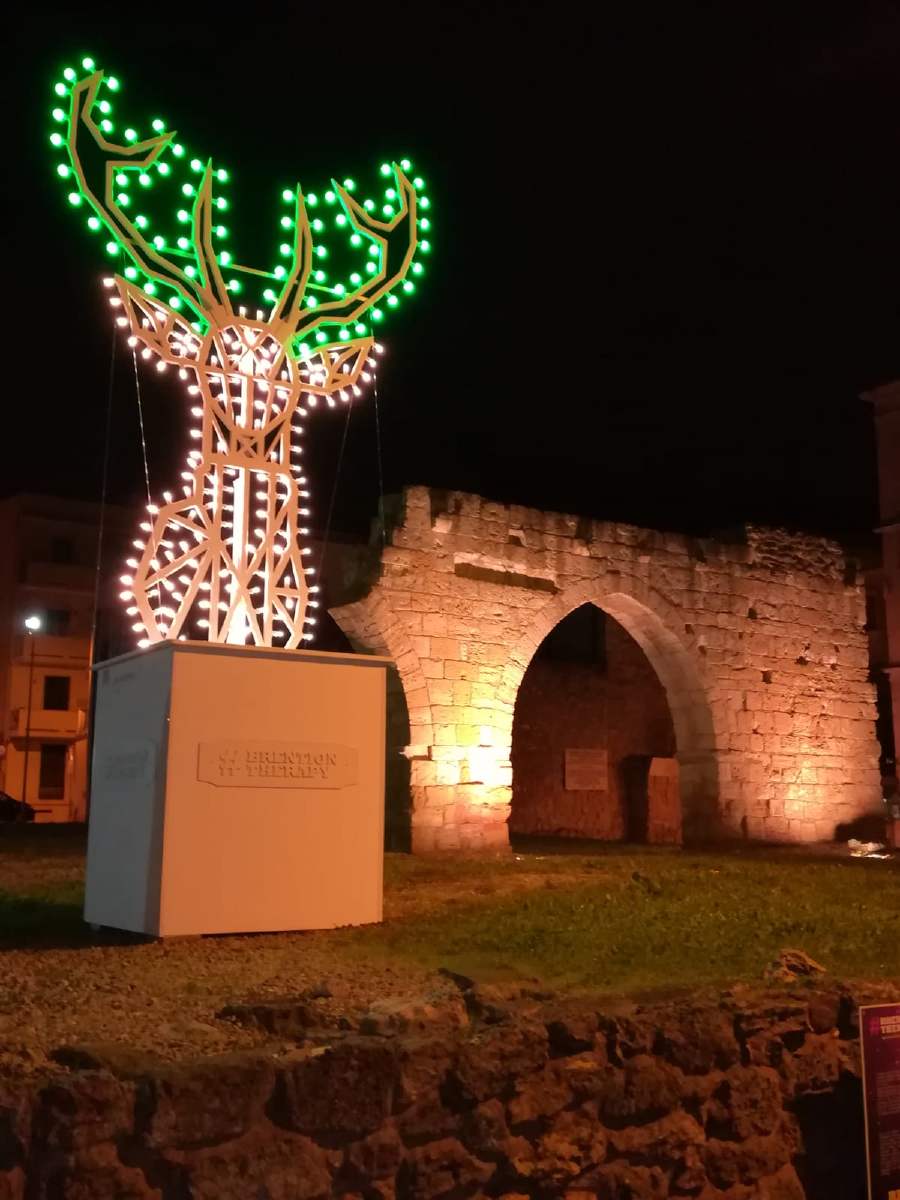 Corna di cervo luminose e policromatiche: la cornice ideale per scattare un selfie natalizio nel centro di Brindisi.