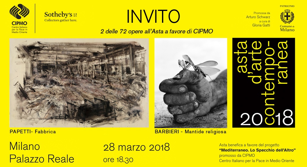 L'Asta benefica d'Arte Contemporanea per CIPMO, giunta alla sua VI Edizione, sosterrà lo sviluppo del progetto di educazione alla cittadinanza “Mediterraneo. Lo Specchio dell’Altro”, basato su una rete di Istituti Superiori Italiani che dialogano con Istituti di Paesi della Sponda Sud del Mediterraneo (Giordania, Israele, Palestina, Marocco, Tunisia). Attivo già da cinque anni con Istituti Superiori milanesi, nel 2018 il progetto si amplia sul territorio nazionale coinvolgendo anche 6 Istituti romani e altri 6 del Sud Mediterraneo. I protagonisti sono gli studenti italiani e mediterranei, coordinati dai rispettivi insegnanti, che, attraverso uno “scambio virtuale”, partono da una comprensione ravvicinata delle rispettive vite quotidiane giungendo ad una percezione comune dei processi in corso nella realtà mediterranea e mediorientale.