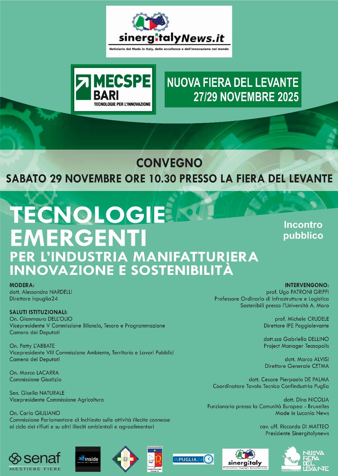 L’iniziativa, al suo secondo anno, organizzata con il sostegno di Senaf e con la collaborazione di Sinergitaly News, nasce con l’intento di accompagnare le imprese verso modelli di produzione sempre più avanzati, competitivi e orientati alla digitalizzazione. Il dibattito sarà moderato dal direttore di In Puglia 24, Alessandro Nardelli, che guiderà gli interventi e introdurrà le diverse prospettive dei relatori.