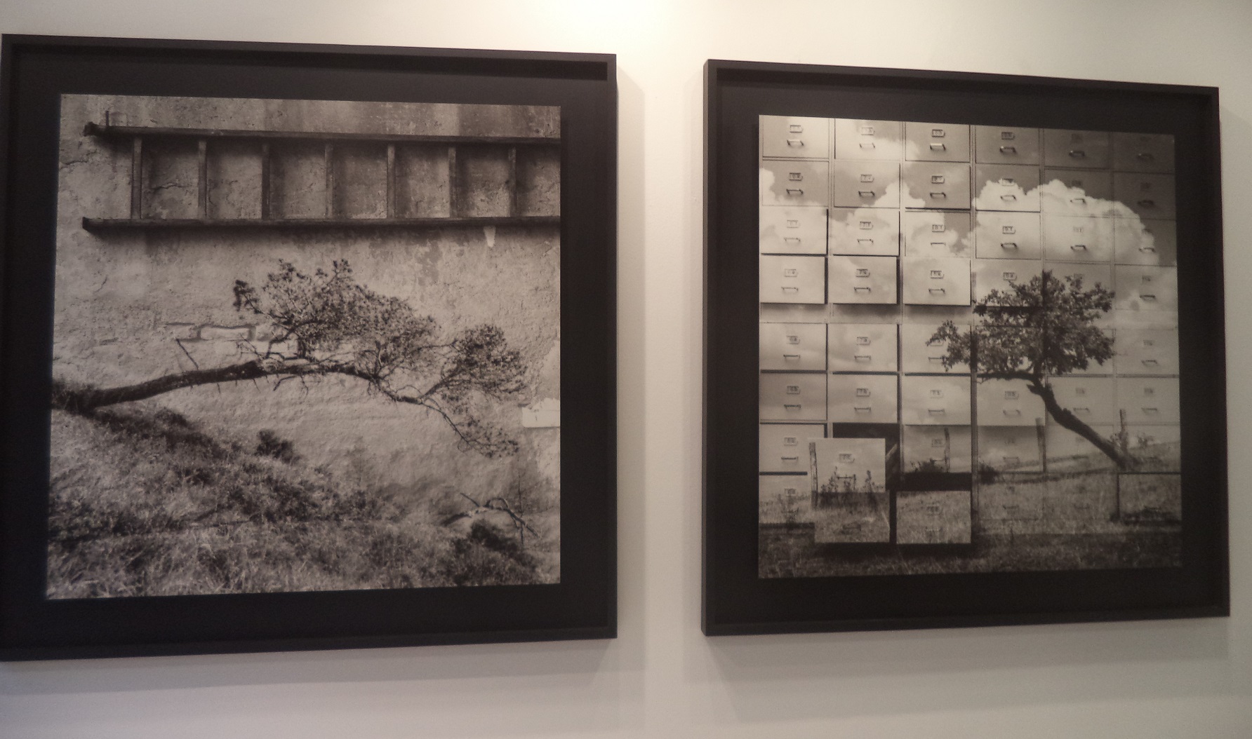 C’è una fotografia in cui il multiverso parte dall’apertura di molti cassetti. Da questi, noi respireremmo l’aria “sana” dei vecchi cataloghi, per una biblioteca? Infatti c’è un albero, ma quasi sradicato per via del tronco piegato con “sofferenza” a 45°. La chioma potrà tramutare in nuvola al ventaglio d’un profumo, e come per la saponetta slittante fra i capi d’abbigliamento, che noi riponiamo con cura in un cassetto? C’è anche una staccionata col filo spinato. Favorevolmente un archivio permette di preservare, contro l’oblio. Così noi alleneremo l’immaginazione a recuperare il tempo che inevitabilmente passa. Ma la burocrazia rischia di farci dipendere da una sorgente che è divenuta un atto. Noi non potremo saltarlo, oltre i suoi cavilli per paletti. In ufficio ci stressa la monotonia delle revisioni. Col paesaggio si gode per “l’altalena” delle montagne, o delle coste. Se il fotografo scatta per afferrare (immortalando), allora l’appiattimento al “conservatorismo” burocratico è simboleggiato da un’etichetta per il cassetto. Questo renderà l’albero non proprio sradicato (soffrendo), ma almeno malinconico (per sballottamento).