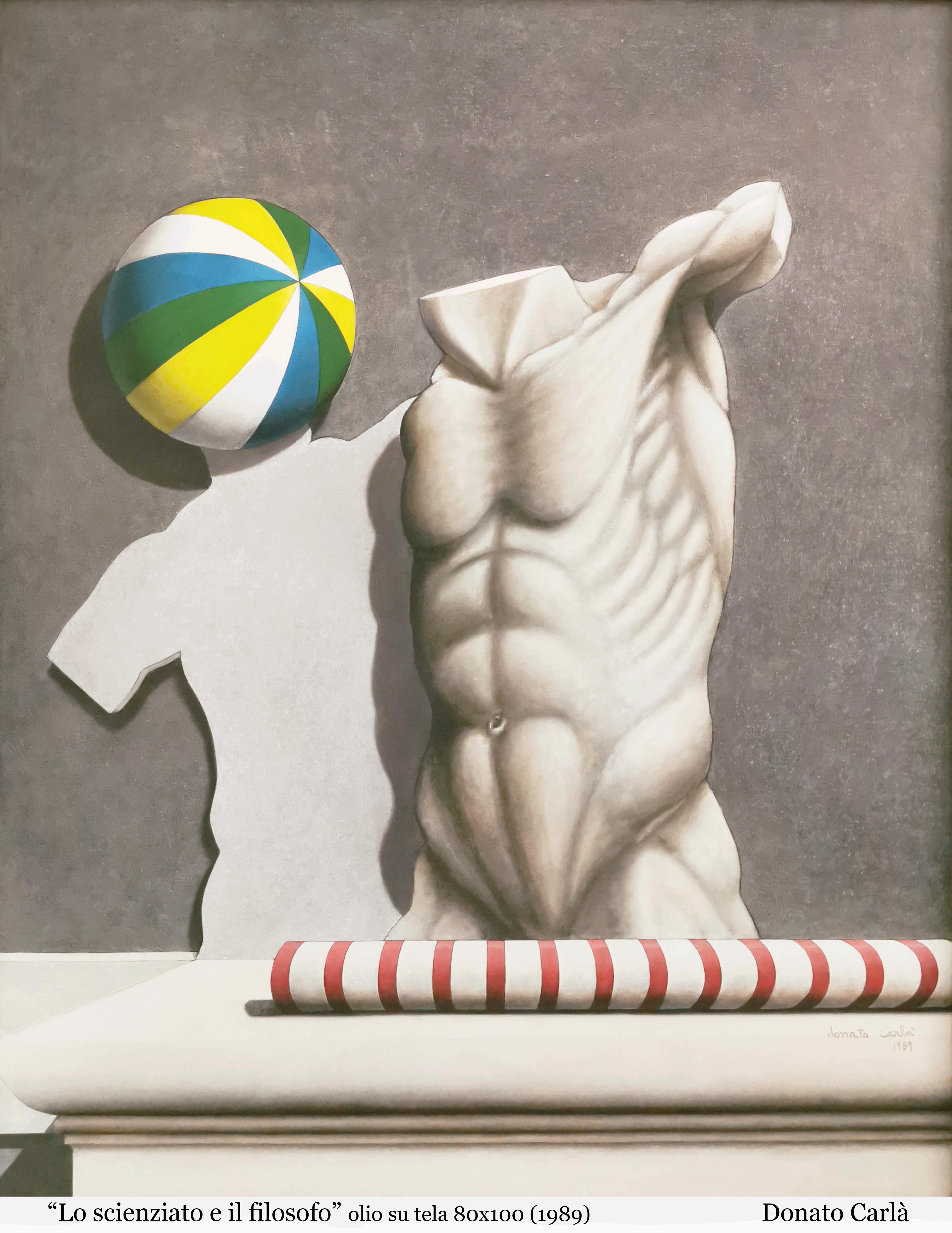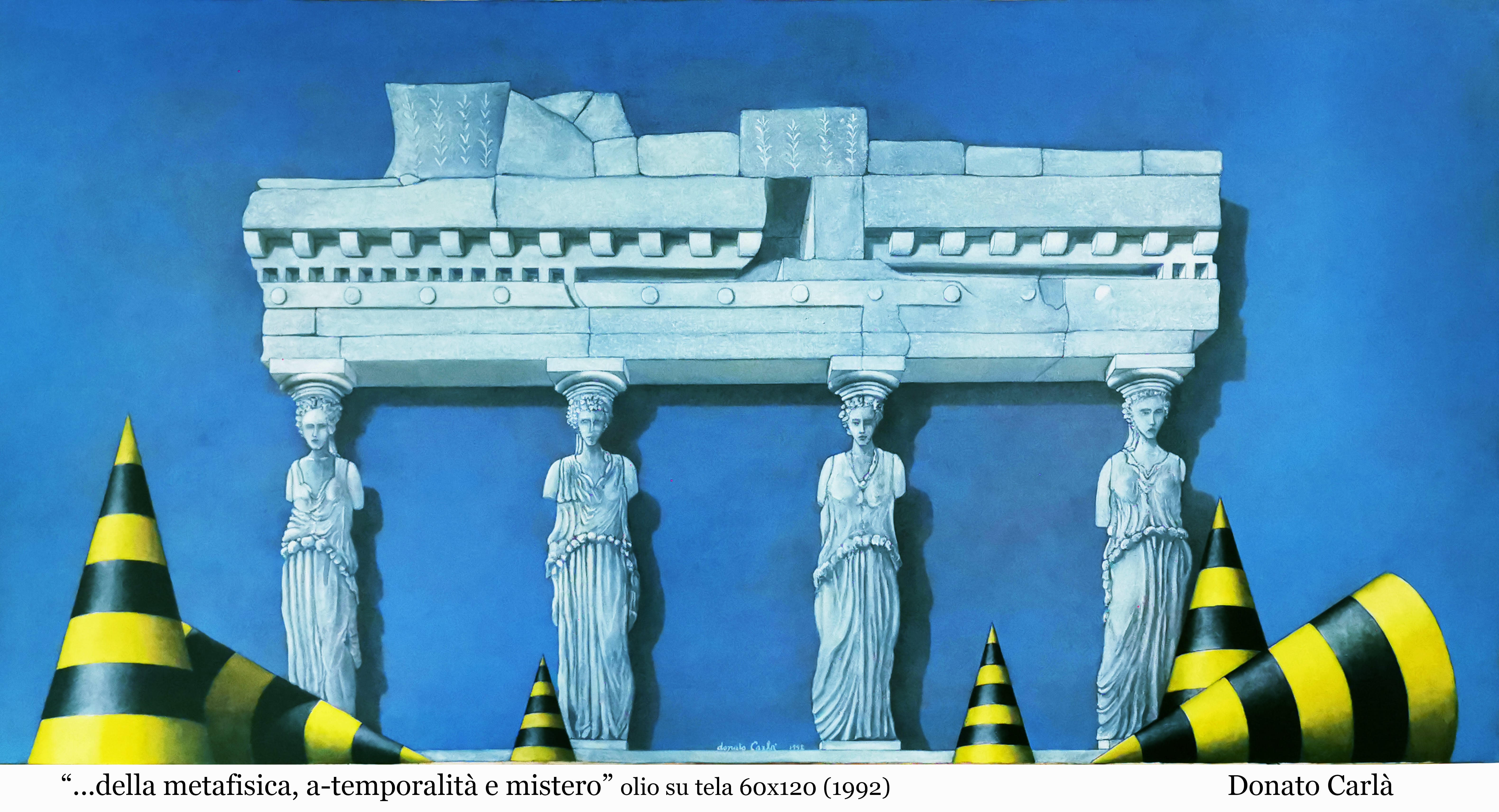 Proprio il riferimento agli accenti iperrealistici divennero trazione e spinta per la trasformazione del mio modo di esprimere un nuovo pragma artistico. Così, dall’iperrealismo annunciato al pensar metafisico, il breve salto pose le basi per ampliare il mio cono ottico fino alla visione di un immaginario pittorico che ancora, per certi versi, era inesplorato, quello per intenderci non legato agli schemi tradizionali della riconosciuta e consolidata cornice figurativo-paesistico. Dall’incertezza alla presa di coscienza fu come liberarsi da una zavorra, e da lì a considerare il nuovo fu come approdare verso una siffatta trasformazione: la pittura metafisica. Quella scelta, però, non riguardò solo l’attività artistica. Infatti, lasciarsi alle spalle quell’esperienza comportò, di fatto e in quanto ancora studente, anche il trasferimento dall’Accademia di Belle Arti di Lecce a quella di Brera a Milano, dove il contesto accademico facilitò una consistente mutazione intellettuale (più ancora che culturale) che mi consentì di concludere gli studi di Brera con una tesi dedicata alla “pittura metafisica, ovvero all’estetica del bello”. Un elaborato che, invero, dovette risultare in qualche modo provocatorio ma di certo fu anche interessante nei contenuti, come mi confidò (gratificandomi non poco) il relatore della tesi Miklos Nicola Varga. Ed oggi mi conforta il fatto che talune mie riflessioni sulla pittura metafisica di quegli anni, trovino un qualche riscontro nel pensiero che il filosofo Nick Zangwill riassume nel suo libro dedicato alla “metafisica della bellezza” (2001 Cornell University, Ithaca con traduzione del 2011 a cura di Christian Marinotti Edizioni s.r.l., Milano).