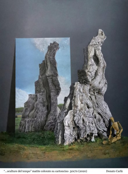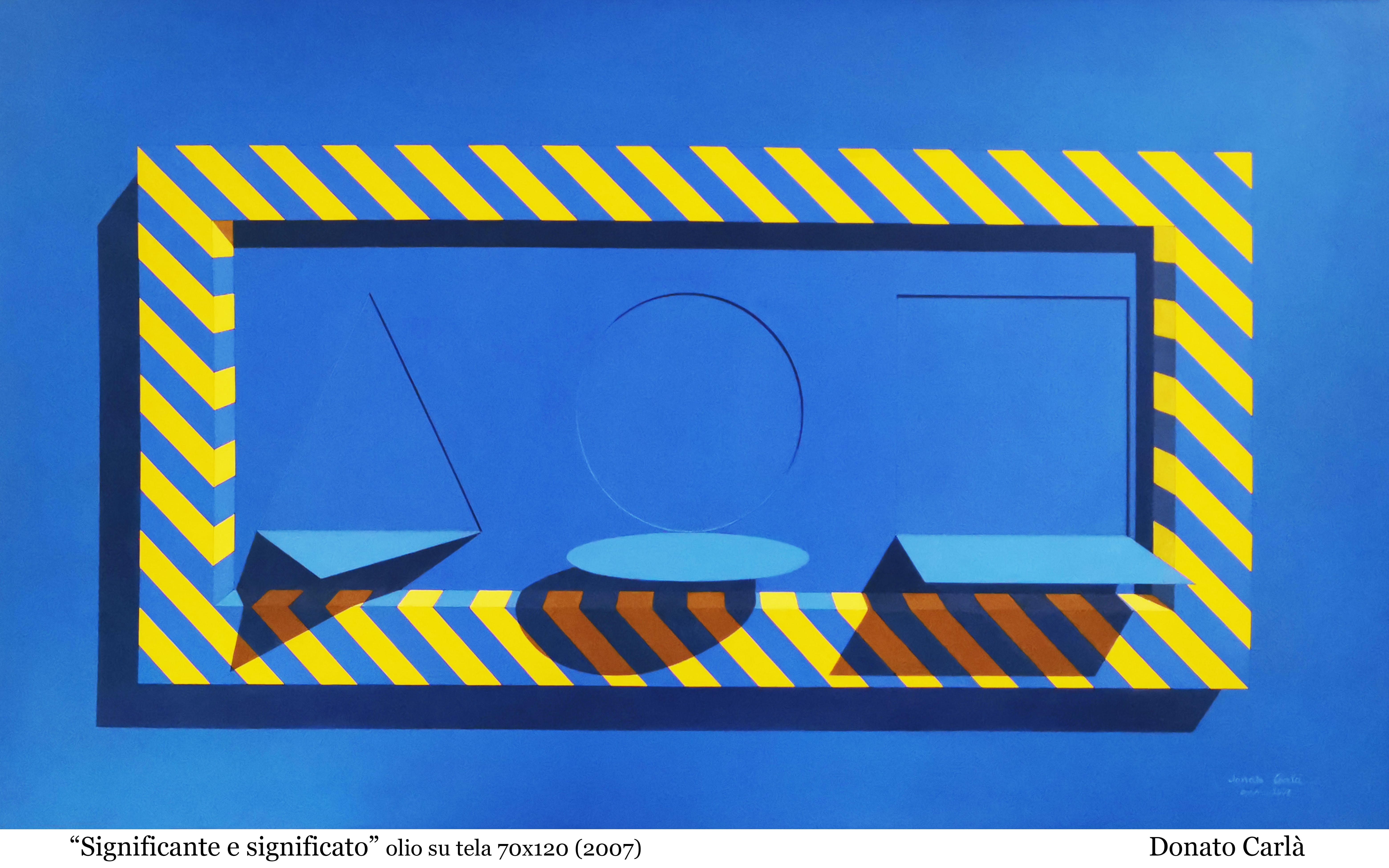 Un percorso tortuoso e a tappe, dunque, a segnare l’arrivo ma anche la ripartenza per riprendere tecniche espressive o anche per intraprendere una nuova ricerca per la successiva stagione. Ed è evidente che, in un tortuoso tragitto, variabili e varianti hanno interagito nel gesto pittorico fino alla trasformazione del mio modo di pensare per immagini, sia per quanto attiene il contesto formale e rappresentativo che per l’approccio a riferimenti e contenuti culturali ed estetici. Non a caso, la narrativa degli anni ’70- ‘80, diciamo pure di prima maniera, ad un certo punto non riusciva più a soddisfare le mie aspettative di ricerca nell’ambito di una logica emozionale che sempre più ricercavo in quella dimensione del voler vedere oltre l’apparente realtà, tanto da allontanarmi sempre più da quel linguaggio pittorico figurativo con il quale avevo raccontato dei luoghi e della vita contadina della mia terra, il Salento. L’istanza di voler allargare il mio campo visivo alla sfera della ricerca pittorica, lontana dagli schemi di quel contesto ormai consolidato, mi allettava, ma nel contempo generava inquietudine e mi distraeva dal mio pragma artistico. Così l’opportunità la colsi dopo attente riflessioni e proprio in occasione di una mostra personale nel lontano 1983, dove in una virtuosistica recensione, lo scrittore e critico d’arte Mario De Marco, scriveva: “Donato Carlà è un giovane e promettente artista … la sua pittura, pur classificandosi ampiamente nell’ambito del genere figurativo-paesistico appare estranea alla tradizione rappresentativa locale che, com’è noto, sia pure attraverso la mediazione dei maestri salentini, affonda le sue radici nell’espressione tardo-ottocentesca di marca partenopea che per non pochi aspetti tiene conto della nuova figurazione, quella, per intenderci, espressa in Puglia da oltre un decennio da Walter Scotti e da Antonio Rolla con accenti iperrealistici…”.