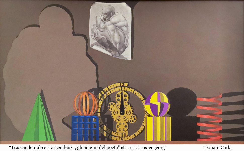 Certamente l’argomento in questione meriterebbe una più ampia discussione per meglio comprendere la definizione di un gesto pittorico al quale ho adattato e adottato l’etichetta di “realismo metafisico”. Comprendiamo, però, che con l’espressione "realismo metafisico" indichiamo una ricerca artistica che, basandosi su un mondo reale o immaginario, cerca di raffigurarlo in modo realistico, ossia con una grande attenzione ai dettagli, alla precisione formale e alla resa visiva, il tutto annodato alla dimensione simbolica e immaginaria della rappresentazione. Da ciò possiamo affermare che il “realismo metafisico” è l’ingegnosa pratica con la quale il fare diviene espressione. E a tal proposito ci è dato sapere che, proprio nell’ambito della produzione industriale, il realismo metafisico trova la sua più ampia applicazione poiché partendo dal nulla, e solo attraverso un intero processo produttivo che va dall’idea della cosa al suo progetto, quindi, dalla realizzazione all’utilizzo della cosa stessa, osserviamo che quanto di fatto non apparteneva al mondo reale, l’interazione di un processo produttivo ne ha reso disponibile la tal cosa nonchè il suo uso. Analogamente è quanto avviene con le mie rappresentazioni pittoriche dove quel fare altro non è che il processo produttivo in cui ogni singolo contenuto del pensiero, ogni entità mentale, e più in particolare, la rappresentazione di un oggetto o immagine alla mente - ovvero la nozione che la mente si forma o riceve di una cosa reale o immaginaria - si perfezionerà nel titolo dell'opera e a questo verranno associate forme e immagini che, coerentemente connesse e legate all'idea e al titolo, saranno depositate come scena finale nell'oggetto artistico. Così contestualizzato, il “realismo metafisico”, nel panorama di una filosofia visiva, come in altre occasioni ho sostenuto, diviene il principio unificante tra ideale e reale, tra in-temporale e tempo. Esso è la sintesi della rappresentazione di un incontro tra forme sensibili e forme intelligibili che si manifestano tra contenuti e significati. Sintesi che permette una relazione diretta tra colui che crea l’oggetto artistico, ovverosia l’oggetto del quale è la rappresentazione, e l’osservatore. È l’esperienza estetica totalizzante che ha come fondamento l’attenzione a ristabilire, nell’artista che indaga, quell’equilibrio desiderato nel rapporto tra interiorità ed esteriorità, tra conoscenza a priori e conoscenza a posteriori, tra immanenza e trascendenza, tra ciò che manifestamente in una raffigurazione traspare alla luce, e ciò che velatamente si nasconde come arte in ombra ma che, allorquando un insieme di segni pittorici - forme e contenuti giustapposti in una ammirevole intessitura scenografica - divengono soluzione e nel contempo enigma per chi osserva.