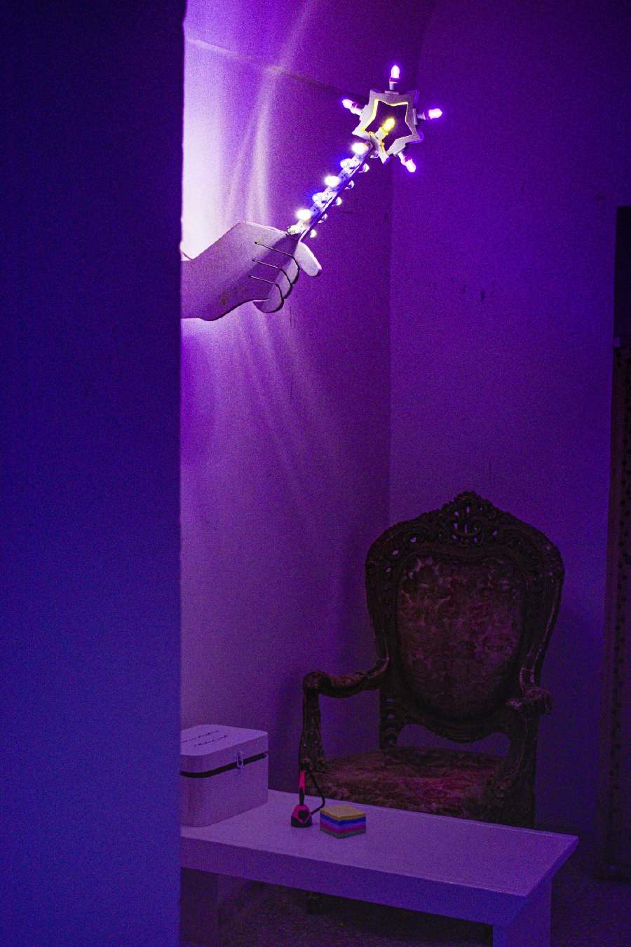 La reinterpretazione in chiave pop delle luminarie, simbolo sempre più in auge della tradizione pugliese; la luce come principale veicolo espressivo per spaziare tra i differenti linguaggi della scultura, della pittura e del design; il gioco dei limiti nella provocazione finalizzata, attraverso un approccio comunicativo “leggero” verso lo spettatore, a generare comunque una riflessione sulle contraddizioni della postmodernità.