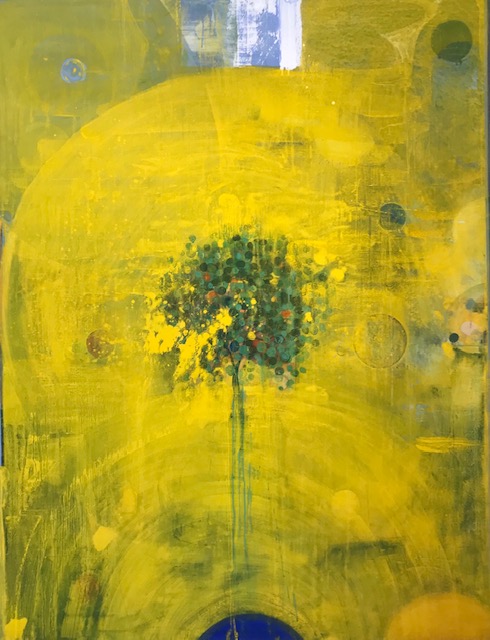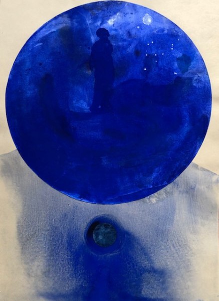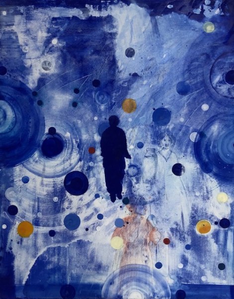 Per quanto riguarda il blu, questo, nella sua nuance oltremare, è per me il colore più spirituale. E’ il colore che rappresenta il cielo, l’ignoto, il cosmo. Certo, tutto questo blu e le sue sfumature sarebbero nulla senza la presenza del giallo, che uso per rappresentare la luce.. “lux” come io la chiamo, che rischiara il visibile e l’invisibile, regalandomi così tutta la luminosa bellezza interiore riflessa nell’opera .