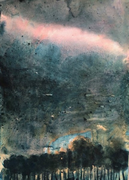 Può succedere di tutto mentre lavoro: incidenti di percorso sulla tela o sulla carta, segni indicatori che infiammano la mia ispirazione. Oppure può accadere che, varcata la soglia del mio studio e riguardando i lavori lasciati ad asciugare il giorno prima, noto che questi hanno riportato alla superficie delle immagini che durante il corso d’opera non avevo intravisto. Da qui una misteriosa e magica sorpresa che mi meraviglia. Tutto questo, alla fine, concorre alla mia ispirazione.