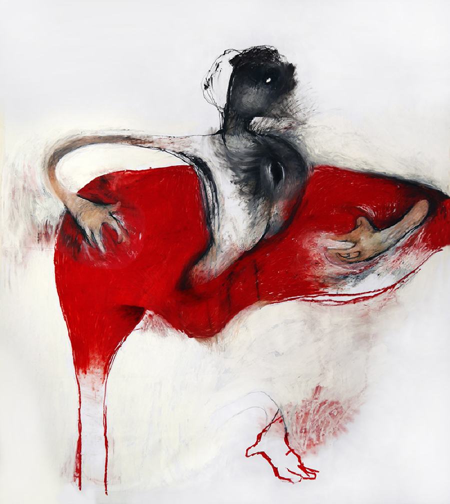 Il segno disegnato, lasciato sulla superficie bidimensionale, è invece il diretto prolungamento del movimento di un pensiero, è la tensione emotiva di quell’attimo che si cristallizza nell’immediato quando ancora è tutto totalmente inconscio. E’ l’inconscio che mi comanda. Tanto che, alle volte, guardo quello che ho fatto e solo dopo capisco i “perché”, spesso anche spaventandomi. Disegno con pastelli e pigmenti perché ho bisogno di avere la velocità e la distanza minima tra il foglio/superficie e la mia mano, di avere le dita sporche, in una continuità col segno disegnato.