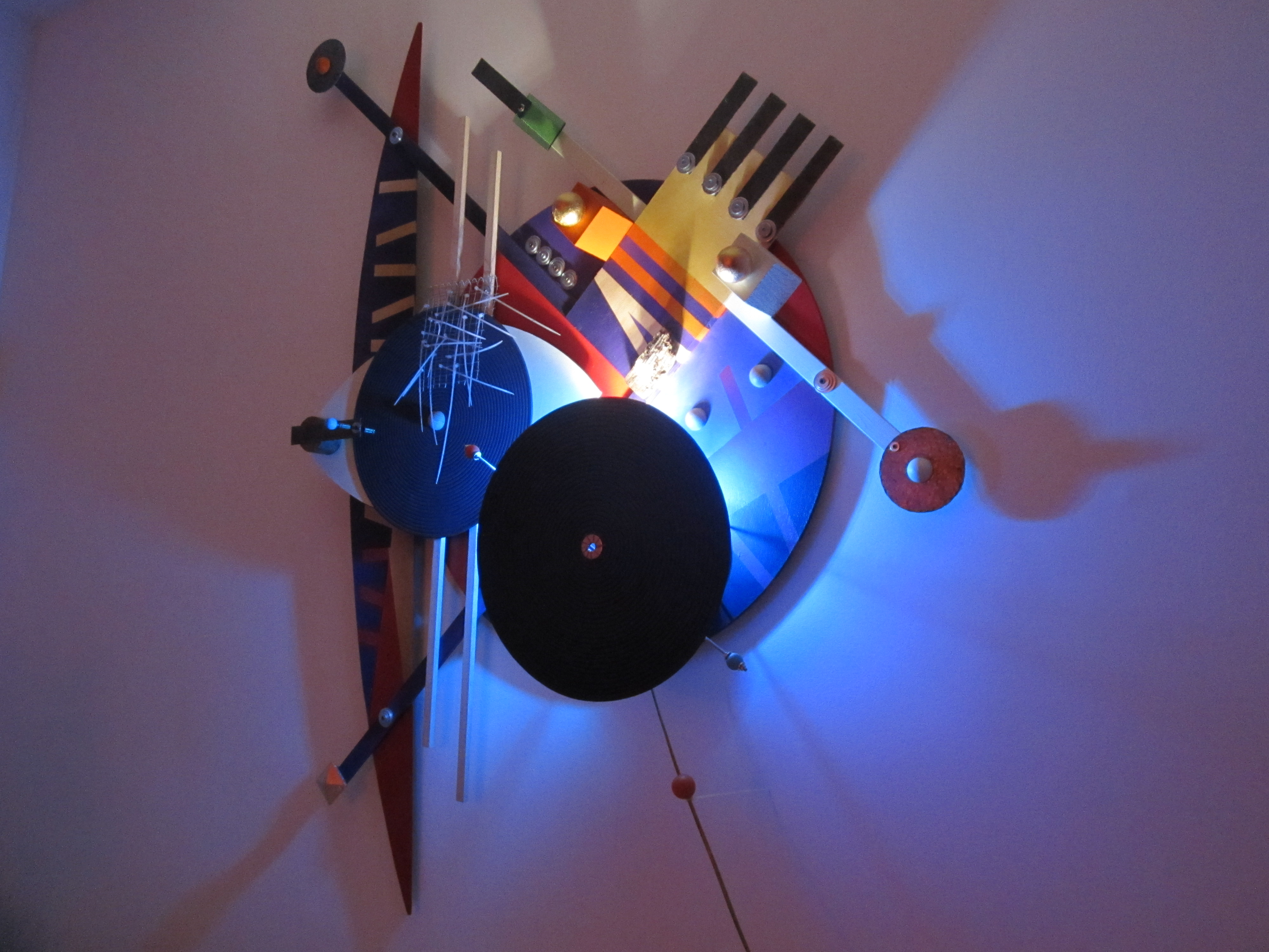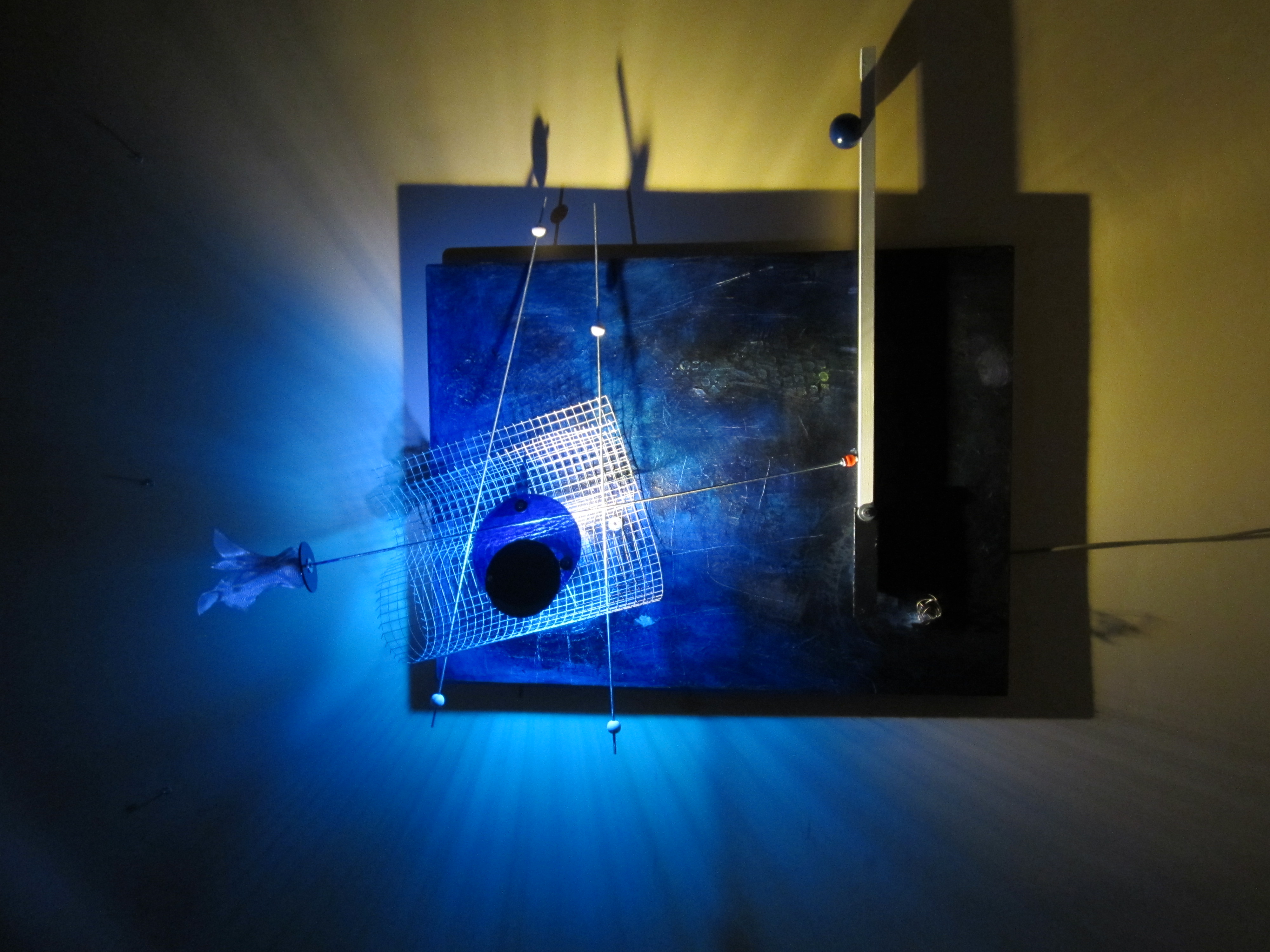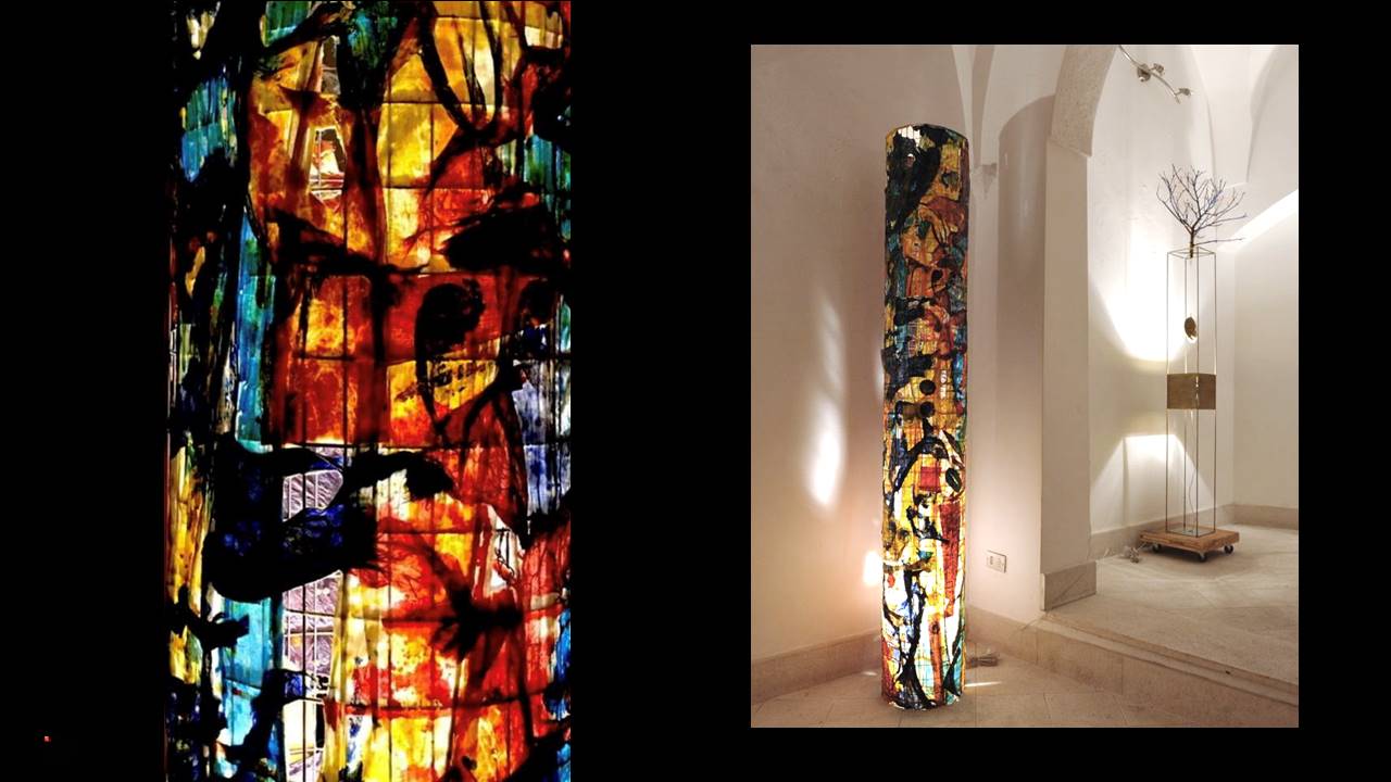 Tempo dopo fu la volta del cinema con il film “Nomi e Cognomi”, prodotto da Draka Production e girato in Puglia, che aveva tra gli interpreti Maria Grazia Cucinotta ed Enrico Lo Verso. Per l’occasione gli scenografi scelsero alcune mie opere luminose e pittoriche, insieme a quelle del poliedrico artista Franco Altobelli. I miei variopinti Corpi di Luce hanno illuminato anche il Chiostro trecentesco di San Paolo, in occasione della IV Biennale d’Arte Contemporanea della città di Ferrara, suggestivo evento patrocinato dalla Regione Emilia Romagna, dal Comune di Ferrara e dalla Fondazione CARIFE. Diverse sono le mostre personali in Puglia e tutte con lo stesso titolo: “l’Ombra della Luce”. E’ evidente il mio legame “antico” con l’opera magnifica del cantautore siciliano Franco Battiato. Nel 2014, con la scultura luminosa “Odisseo”, ho avuto l’onore di ricevere il terzo premio nell’ambito della Biennale d’Arte Contemporanea Rocco Dicillo - IX edizione ( Biennale istituita per ricordare l’agente di P.S. caduto nell’attentato di Capaci), Città di Triggiano – Bari, con l’alto Patrocinio della Presidenza della Repubblica Italiana, il Patrocinio della Regione Puglia, Provincia di Bari, Questura di Bari. Un evento toccante che ha visto la partecipazione di accreditati artisti pugliesi di importanza nazionale.