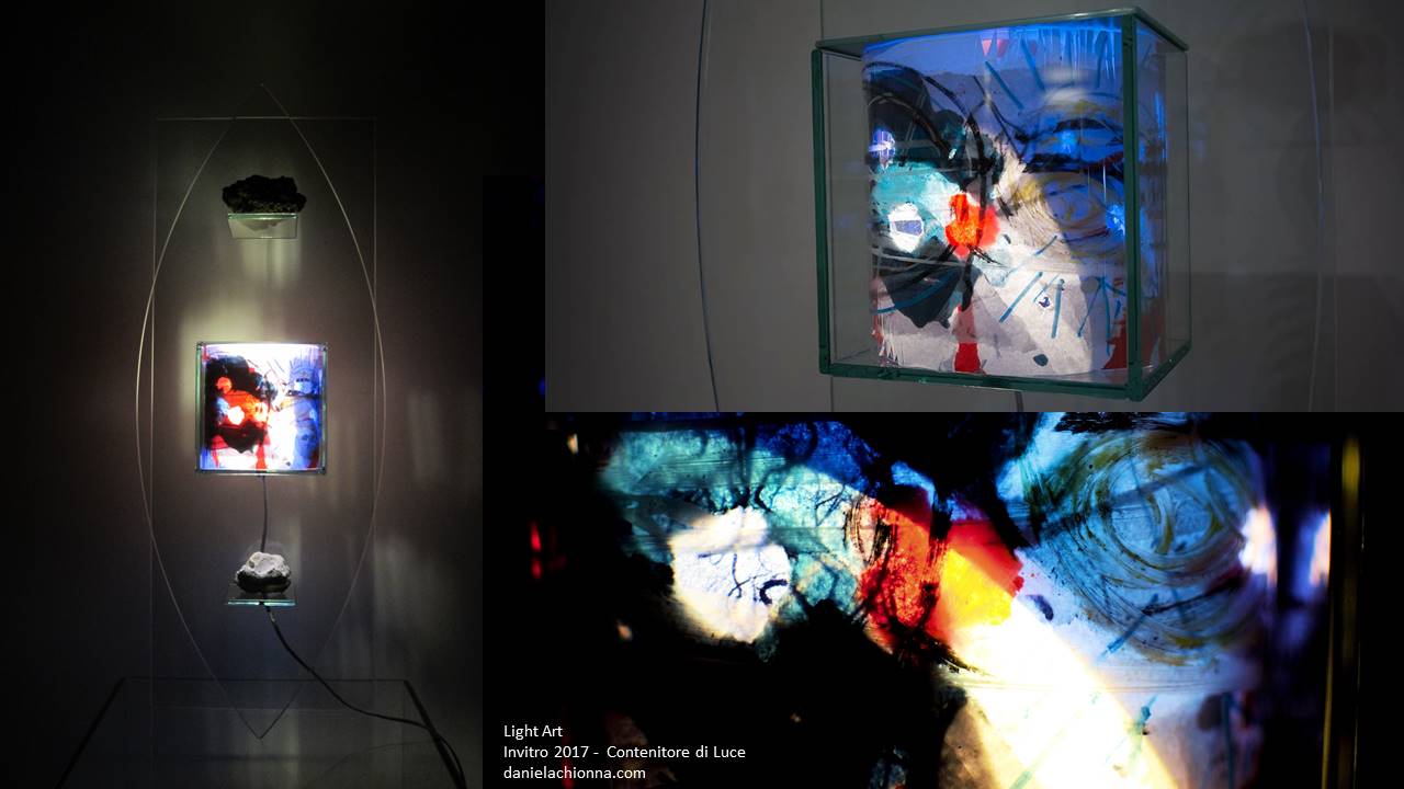 Già alla fine degli anni ‘90 ho cominciato ad avvicinarmi alla Light Art e alle sue tante declinazioni creando oggetti luminosi. Ero interessata al rapporto tra materia e luce, in particolare alla capacità di quest’ultima di rendere leggeri e cangianti i differenti tipi di materiali con cui interagisce, cambiandone quasi, se pur apparentemente, le caratteristiche fisiche. Infatti, il progetto “Quadri e Contenitori di luce” nasce non come proposta di oggetti illuminanti, ma come oggetti illuminati dall’interno, capaci di creare atmosfere grazie alla diversità dei materiali di cui sono costituiti, quindi è la luce che consegna l’intera opera a una nuova dimensione.