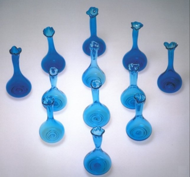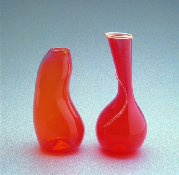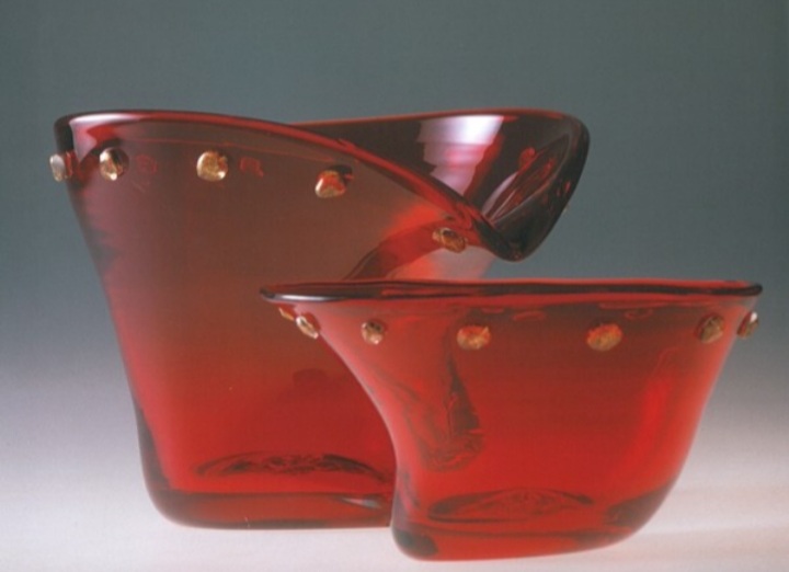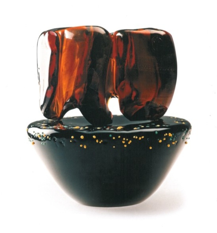 Si è vero, credo che gli oggetti debbano abitare lo spazio, e lo storico Donato Valli fu particolarmente attento guardando all’evoluzione del mio lavoro. I miei lavori in vetro sono come personaggi in comunicazione tra loro quando “abitano” lo stesso spazio. Mostrano una tensione espressiva che si propaga. Spesso sono progettati in coppia e ciascuno dei due risponde in sintonia complementare all’altro. E, l’insieme degli oggetti compone e riferisce anche l’idea creativa della trasparenza e quella metodologica della materia stessa che si crea durante la lavorazione. Mi sono trovata quasi casualmente a Murano. È stato un colpo di fulmine, anzi, più propriamente, un “colpo di luci”. Nelle fornaci i fuochi sempre accesi, nei cortili luccicanti montagne multicolori di scarti di vetro riciclabili all’infinito. Che meraviglia! Appena potevo correvo a prendere il treno da Milano per Venezia alle 4 del mattino per essere a Murano alle 8 e lavorare col mio primo maestro, Mario Dei Rossi. Il più esperto, il più anziano e il più saggio di quelle generazioni di mastri vetrai. Il tempo di un consulto per decidere i colori del giorno per i miei progetti che appendevo a lato della fornace e subito si cominciava a lavorare. Caldo bruciante. Brevi parole, gesti calibrati, veloci sguardi d’intesa per dare forma al liquido vetro. Poi, la lunga attesa della stabilizzazione termica dei pezzi.