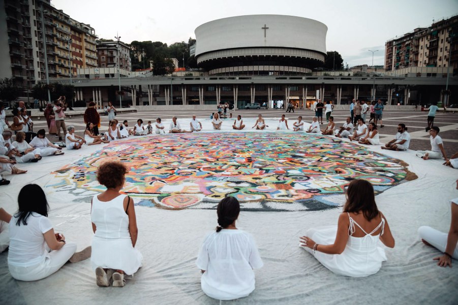 Si, e l’opera condivisa è un’esperienza straordinaria perché porta con sé un progetto fatto su misura. Per esempio, lavorare in oncologia o lavorare in pediatria significa fare scelte di materiali diversi. Bisogna infatti pensare a questo progetto come al vestito che viaggia su misura sul corpo: anche se si tratta di un’opera d’arte, l’obiettivo da raggiungere entra nel sociale con tutta una serie di varianti: quale materiale usare, che tipo di tecnica adottare. Ad esempio, quando sono stata in carcere, nel reparto femminile, di fronte all’abbrutimento di queste donne decisi di realizzare un lavoro sulla bellezza. Abbiamo così scelto dei tessuti meravigliosi, coloratissimi, perché pensavamo che l’unica possibilità di incontro dal punto di vista anche pratico fosse quello di lavorare su qualcosa che sapessero fare, coniugando questo con tutta una metodologia di aiuto. Dunque realizzare delle strisce per poi tagliarle, ad esempio, rendeva il lavoro condiviso: non era più solo “mio”, ma diventava “nostro”, perché la condivisione nell’arte ha un significato di relazione, unendo le persone di ogni età. E tutto ha funzionato benissimo.