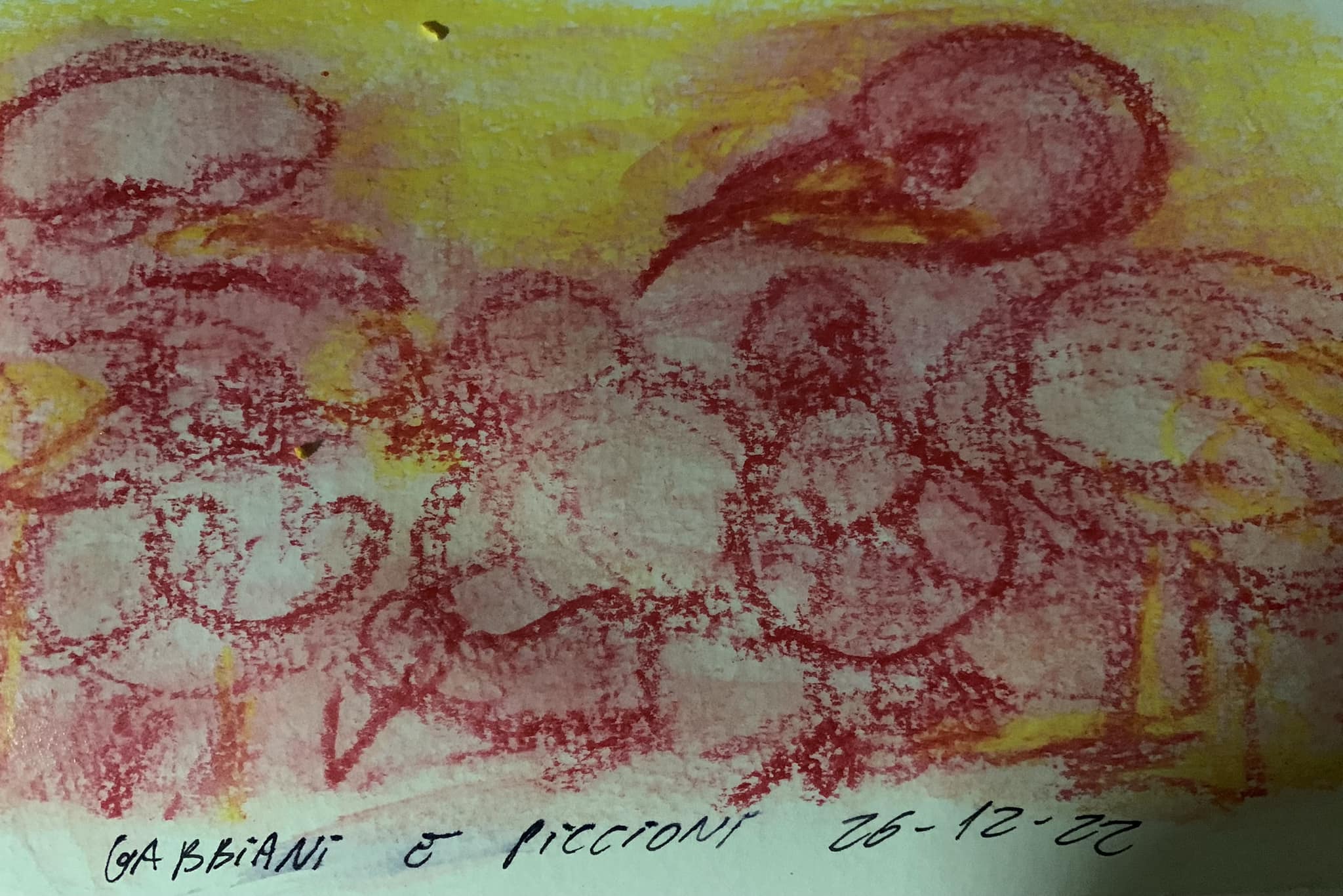 Al centro della scena, c'era un piccolo gabbiano che mangiava una carcassa di piccione, e questa è una scena usuale, sulla quale spesso non riflettiamo, quando ci si pone davanti nella nostra quotidianità, e in fondo ci pare rassicurante e familiare, di quante carcasse d'animali ci nutriamo quotidianamente?
