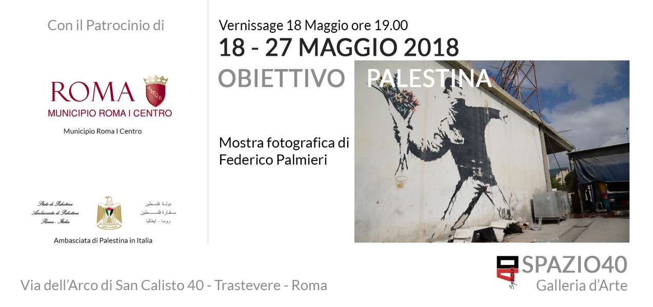 La mostra fotografica ha ricevuto il patrocinio dell’Ambasciata di Palestina in Italia e del Municipio Roma I Centro. Si terrà a Roma dal 18 al 27 maggio 2018 presso la Galleria d’arte Spazio40, a via dell’Arco di San Calisto40, Trastevere.