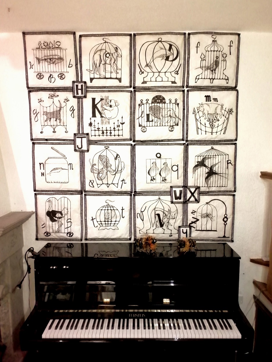 Nell’installazione a tecnica mista dal titolo Abbecedario, Gianluca Esposito immagina che l’uomo torni ad un linguaggio istintuale. Dal “quadretto magico”, la “bacchetta” della linea informale farebbe uscire l’animale al simbolismo d’una divinazione. Ammettiamo l’ingabbiamento dei pregiudizi culturali, a basamento ordinato d’una società. Ma l’artista avrebbe raffigurato una palla di vetro, da “strofinare” sulle “ali” della libertà. Pare che la grata sia quella armonica d’un pentagramma, accogliendo le lettere come note. La musica di certo sa coinvolgere. Qualche animale, favorito dalla sua conformazione, suonerebbe meglio. Così la piovra potrà rimpiazzare l’arpista, mentre il delfino “fischierà” facendo ondeggiare i piatti del batterista. Nell’insieme, l’Abbecedario si percepirà allo spettacolo circense d’un linguaggio che evolva, liberandosi da una mera “pesca” sulla corrispondenza col mondo. Le “canne” informali celebreranno un ritmo solenne. L’ondeggiamento sarà quello d’un organo. Istintivamente, l’astrazione coinvolgerà la figurazione verso un inno alla vita. In una pratica divinatoria, ci si sente comunque liberi d’intuire il Destino, togliendogli la soddisfazione d’averci “ingabbiato” sul determinismo.