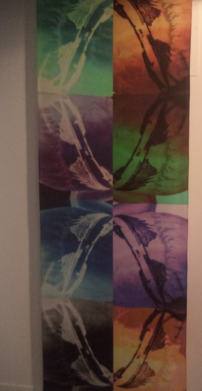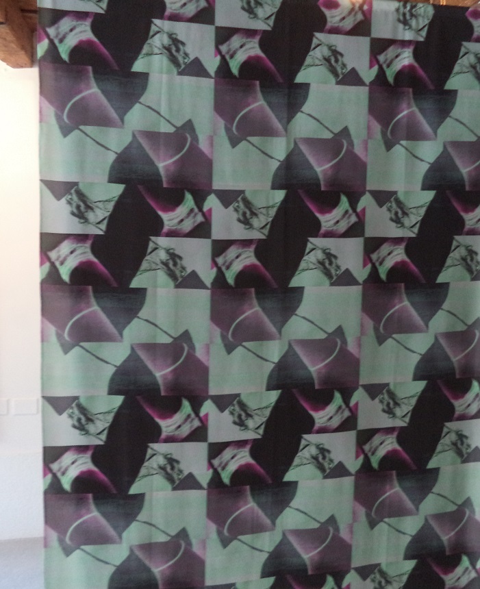 A Venezia, Kaethe Kauffman ha installato dei pannelli su seta, in cui è impressa un’immagine fotografica. Dapprima, al corpo danzante si lega un filamento, e per registrarne la sequenza di pose. Le stampe finali sono anche ricolorate. La corporeità assume un simbolismo sociale, nel suo “stendardo” d’emancipazione. Al muscolo immediatamente noi chiediamo la forza d’un sostegno. Aggiungendovi la percezione della danza, la rilassatezza s’originerebbe per bilanciamento, grazie alla “respirazione” dell’interiorità. Una vera emancipazione presuppone che ci si senta talmente liberi da rinunciare ad un ritorno d’utile. Simbolicamente, il respiro funziona un po’ come il supporto “muscolare” del pensiero. Però il loro compiacimento non imprime alcun orgoglio. La posizione yoga preferisce la spiritualizzazione del soggettivismo. Pare che Kaethe Kauffman usi il filamento come un hula hoop, per le articolazioni (del ginocchio, del gomito, della mano ecc…) al proprio periscopio. Sparirà completamente la banalità d’un controllo sociale. Nell’arte performativa, è dibattuto quanto il soggetto riesca ad indirizzare da solo i propri movimenti, anche in ambito psicanalitico. Di certo Kaethe Kauffman evita la risposta offerta da una cultura tradizionale. La post-produzione digitale contribuisce a distorcere per vitalismo ogni regola dal cubismo o dall’optical art, astrattamente. Più spontaneamente, in uno zootropio del corpo, avverrà che tutto ruoti intorno alla spiritualizzazione d’un godimento. E’ un’emancipazione oracolare, se la maturazione organica s’accompagna ad un ricerca sul senso profondo della vita. La danza garantisce un piacere. Ciò non vieta di chiedersi perché desideriamo di comporla. Forse la risposta si nasconde nei fondali neri, in accordo con la psicanalisi. Anche il periscopio abbisogna d’un bilanciamento, dialetticamente. Chi spia è “pressato” dal nascondimento. Dal negativo fotografico, si passerebbe alla “notte” della vita. Nessuno è abituato ad immaginare un al di là… delle ossa (senza “ingigantire” il problema tramite l’anima). Ma questo godimento cercato da Kaethe Kauffman permetterebbe in aggiunta di camminare al “buio”. E’ un’estetica più materialistica, in grado di coinvolgere addirittura lo stato vegetativo. L’eventuale citazione sul test di Rorschach avrebbe rivoltato il suo psicologismo nel “calzino” dell’edonismo. Ai muscoli ed alle articolazioni noi non associamo mai la dignità fenomenologica d’una luce vitale, come per gli organi interni. Anzi la neghiamo, se vi manca il concorso dell’emozione o del sentimento. Kaethe Kauffman cerca le “luci ossee” della ribalta. S’immagina che sia il palcoscenico in sé (senza l’attore) a godere della sua intelaiatura. Vi calerebbe il “sipario” d’una mascherina lussureggiante. Questa non servirà a nascondere l’interiorità sentimentale, bensì ad “agguantare” il godimento in una vita letteralmente… “da sogno”. A livello sociale, si valorizza soprattutto un io ballo da sola da parte della donna, senza il controllo del maschilismo.