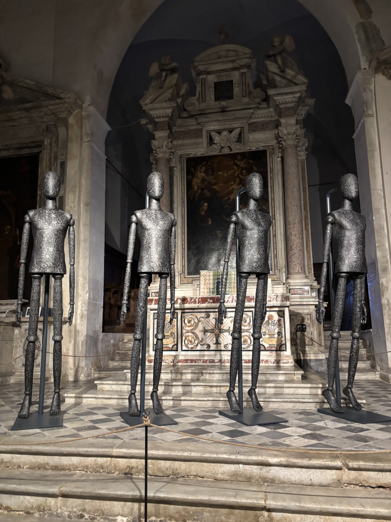 In silenzio, questi personaggi - alte due metri e mezzo - invadono lo spazio sacro della chiesa del Sant'Agostino per ricordare di interrogarci sull'essere e non sul sembrare. In proposito Chiassai commenta: “sono ‘alieni’, ma sono profondamente umani, sono scuri, ma colorati di segni e parole. Sono totem futuri ma del nostro tempo, ibridi tra tecnologia e artigianato, tra intelligenza artificiale e arcaico disegno umano; sono archivio e profezia”.