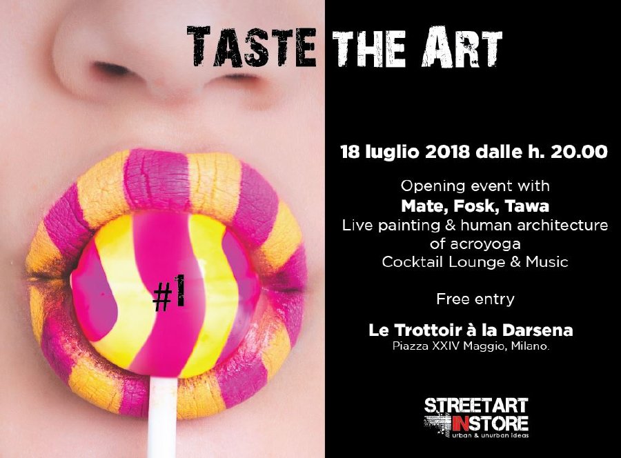 Taste The Art Opening event: 18 luglio 2018 Mostra: 18-30 luglio 2018 – ingresso libero, aperta tutti i giorni dalle ore 17.00 Location: Le Trottoir à la Darsena, Piazza XXIV Maggio, Milano