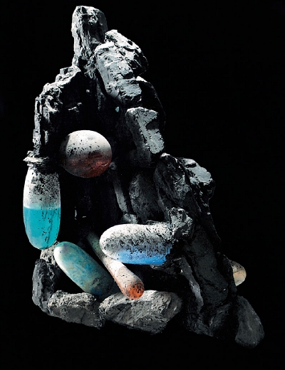 Nell’opera d’arte a tecnica mista che s’intitola Tellurica (1985-1989), esteticamente conta la dialettica fra il carbone ed il vetro. Quella in via alchimistica si trasfigurerebbe in un meteorite di pillole. Forse la medicina è sempre “tellurica”, laicamente, rispetto alla provvidenza del miracolo. Dalla psicanalisi, l’etere della notte diventa l’epidermide del sogno. La pedemontana lombarda e piemontese ha certe torbiere. Se fortunatamente mancasse la trivella del petrolio, alle “vertigini” d’uno sfruttamento, le amministrazioni comunali educheranno alla sostenibilità, tramite la “flebo” del trekking (laddove un po’ di fatica per le articolazioni migliora la circolazione sanguigna). L’acqua del Lago Maggiore appare freddamente limpida. Durante un trekking, la pillola “carbonifera” è esemplificata dalla borraccia, e contro il “terriccio” < spaccasole > della sudorazione.