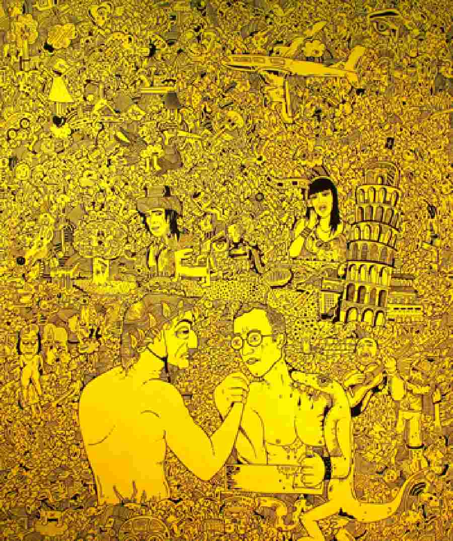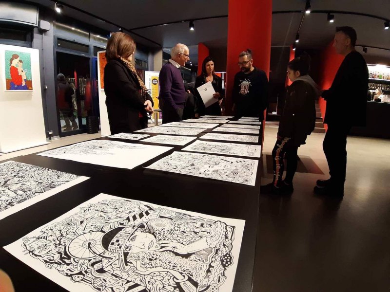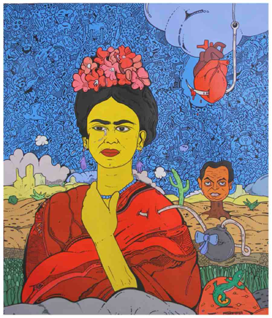 L’originale sintesi tra fumetto ibridato e pop art, le radici artistiche che affondano nell’opera di Keith Haring e nella “profondità policromatica” del muralismo messicano, il dinamismo del live painting caratterizzato dalla connessione tra musica e arte. Questi gli elementi fondanti dell’universo pop di Massimo Pasca, artista salentino con una lunga esperienza come live painter, scenografo, disegnatore, grafico, Mc, in un’ottica di contaminazione tra diversi linguaggi espressivi. Lo stile di Pasca è inconfondibile, con vivaci policromie che si stagliano su ritratti di icone o personaggi storici, figure oniriche, immagini visionarie che trasudano vitalità, ironia, dissacrazione. La personale “Il mio mondo visionario”, in esposizione al Teatro Kismet di Bari fino al 12 aprile, celebra l’ “opera pop” dell’artista originario di Nardò, che ha alle spalle un nutrito background culturale, in particolare a Pisa. La mostra, curata da Paola Pagone, è una raccolta di opere del periodo tra 2010 e 2019, di medie e grandi dimensioni, ed è stata inaugurata con un live painting, pratica artistica portata da Pasca nel Salento fin dal 1994. Ecco dunque l’enigmatica Frida Khalo, o il bizzarro ritratto che riunisce Dante con Haring, il Duca di Montefeltro e tante altre immagini oniriche che richiamano visioni dantesche rivisitate sotto il segno del pop. Tra le innumerevoli collaborazioni di Pasca, ricordiamo quella come scenografo e aiuto scenografo nello spettacolo di Gabriele Lavia e Mariangela Melato, “Chi ha paura di Virgiia Woolf?” al Teatro Verdi di Pisa o i contributi su diverse riviste tra le quali Il Mucchio, Collettivo Mensa, Qui Salento, le creazioni aristiche per musicisti del calibro di Negrita, Piero Pelù, Bandabardo’, Roy Paci. Evidente e coinvolgente è il carattere visionario dell’opera di Massimo Pasca che dichiara: “Se dopo aver visitato la mostra avrò contribuito ad aggiungere un tassello all’accezione positiva che l’aggettivo visionario sembra aver assunto anche nella lingua italiana (visto che in inglese visionary ha già una connotazione positiva) ne sarò felice, i visionari mettono un freno alle bruttezze del mondo”.