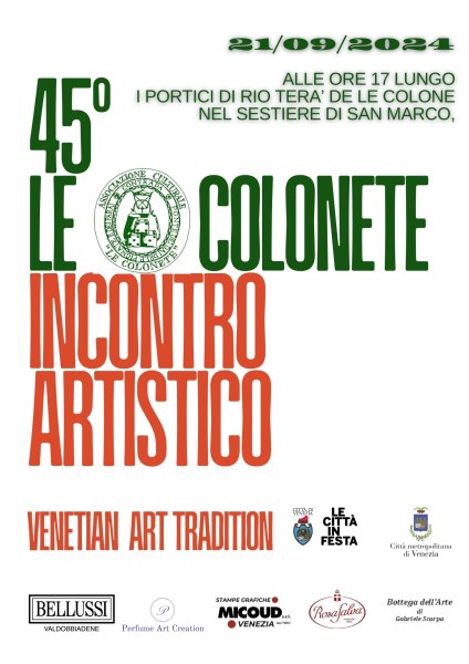 l’Associazione Culturale Le Colonete, è lieta di presentare per l’anno 2024 il “45° INCONTRO ARTISTICO”, evento culturale con entrata libera e gratuita, con esposizione collettiva di arti visive come pittura, grafica, fotografia, stampa digitale ed altre tecniche.