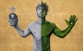 Un Re convinto della propria forza stringe tra le dita un potere inesistente, mentre la Natura, oltraggiata, viene sacrificata alla presunzione dell’uomo.