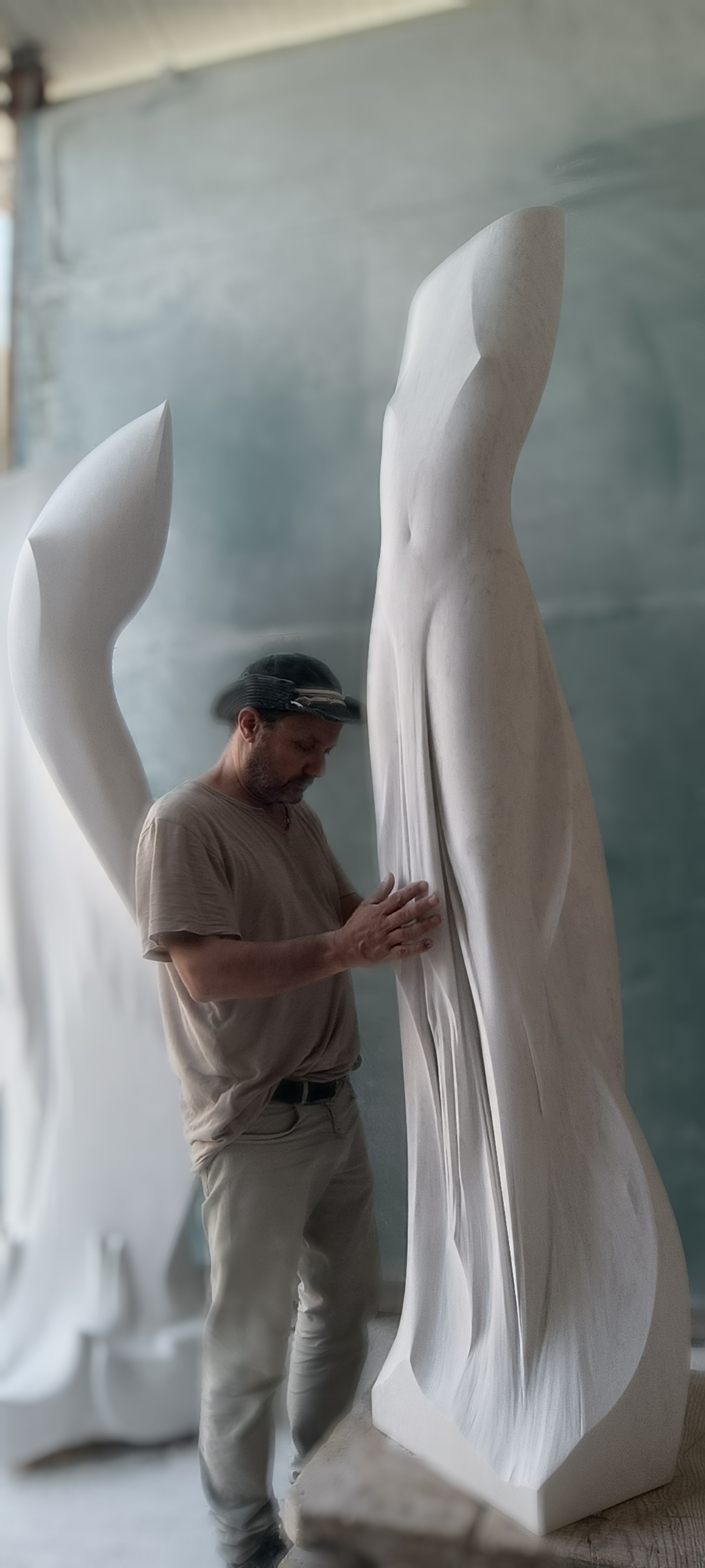 È così che lo scalpello di Giovanni Balderi plasma la materia alla ricerca dell’anima intrappolata all’interno del blocco di marmo che, nonostante la sua durezza, si presenta allo sguardo come leggero e delicato. L’eco di quell'anima che l’artista libera dai vincoli della materia e modella in forme leggiadre, viene catturato dall’occhio dell’osservatore che percepisce ogni scultura come una rappresentazione visiva dei conflitti interiori e della capacità umana di far fronte alle fragilità. Sebbene il momento della creazione e quello dell’osservazione siano diversi e separati e sebbene l’artista e il visitatore restino lontani, essi sono uniti dalle emozioni che la superficie levigata del marmo restituisce e suscita in ciascuno.