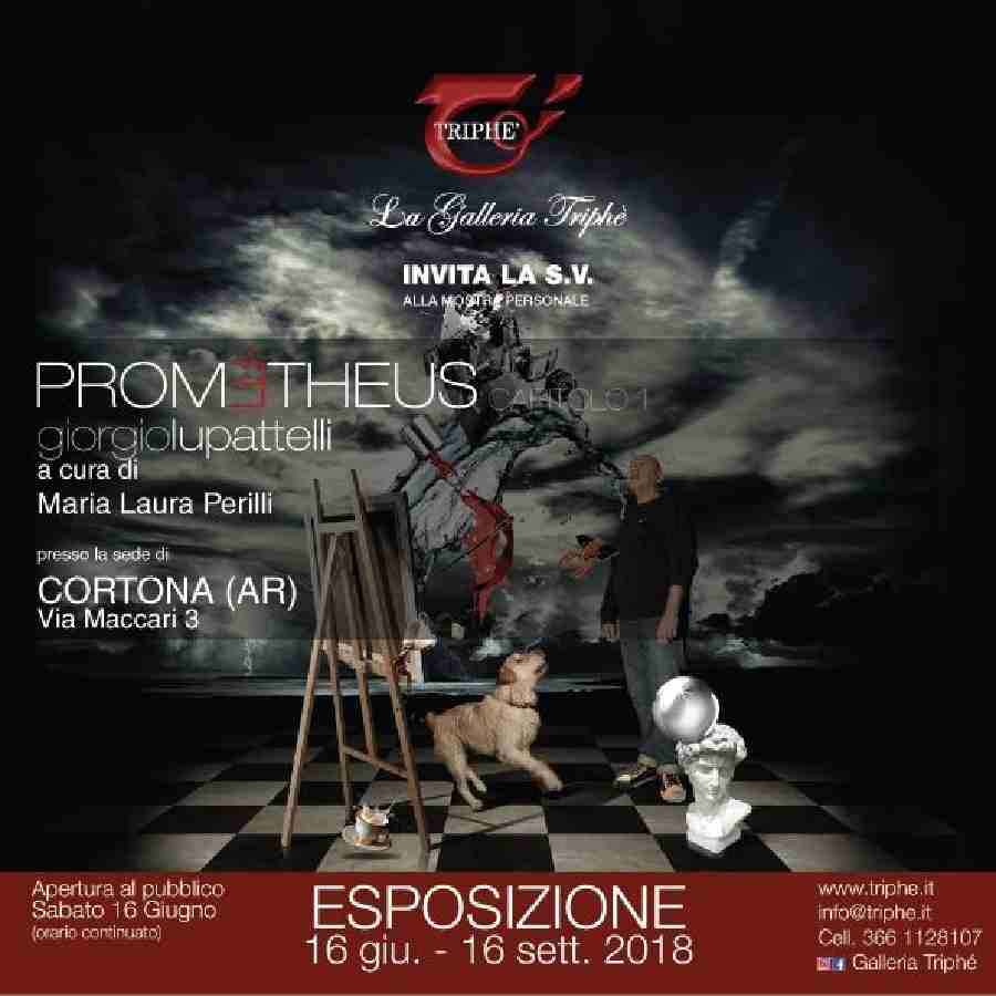 Promètheus è il progetto artistico che Giorgio Lupattelli presenta nelle sedi della Galleria Triphè – con la cura di Maria Laura Perilli -, quale espressione di una sintesi creativa frutto di un percorso artistico articolato e complesso. Le opere in esposizione, prima a Cortona e poi a Roma, rappresentano, infatti, non solo le indubbie capacità pittoriche e scultoree di Lupattelli, ma sono, soprattutto, l'espressione di un linguaggio artistico autonomo e ad alta identificabilità. Tutto questo, poi, nel rispetto di una maturità artistica stratificatasi nel tempo grazie anche al contributo formativo, peraltro mai disconosciuto da Lupattelli stesso, dei tanti artisti incontrati nel tempo e da lui stesso sovente omaggiati con citazioni più o meno esplicite. Il nome, poi, di Prometeo, scelto dall'artista per identificare i due momenti espositivi, non è del tutto casuale. Risponde, infatti, al preciso intento di stigmatizzare, in maniera marcata, una proposta artistica, che, se pur in progress, vuole esaltare quella creatività tanto ben incarnata proprio da Prometeo, mito dell'uomo creativo per eccellenza. Le opere in esposizione, dalle tecniche più variegate, non ultima quella impiegata nel lavoro che dà il titolo alla mostra stessa (stampa digitale a doppio passaggio opaco/lucido su alluminio dibond), ben rappresentano, poi, l'inquietudine che accompagna l'artista. Dice Lupatelli: "Credo che l'uomo contemporaneo sia probabilmente andato oltre il mito di Prometeo e, pur muovendo da sacrosanti principi, è sempre più in delirio di onnipotenza e si crede in diritto di adeguare il mondo a tutto ciò che lo circonda, alle proprie esclusive esigenze, fregandosene spesso delle conseguenze." Si tratta di una inquietudine che traspare in molte delle sue opere, quasi in bilico tra una classicità prorompente ed una contemporaneità destabilizzante. Una spinta artistica, la sua, evidente, espressione della ricerca di un punto di equilibrio quale armonia tra razionalità e irrazionalità, tra essere e apparire. La ricerca di un equilibrio che tanto attanaglia l'uomo di oggi, anche se sovente in maniera inconsapevole. Sottolinea Paolo Randazzo in merito all'opera di Vladimir Jankèlèvitch: l'avventura, la noia, la serietà: "Anzitutto stare a occhi aperti nella realtà e accettare il fatto che essa è complicata, difficile, non semplificabile; quindi acquisire strumenti di lettura del reale che dalla scienza e dalla filosofia traggano elementi di conoscenza, di consapevolezza e di saggezza che ci aiutino a sopravvivere." È un'inquietudine questa che solo un artista illuminato come Lupattelli poteva trasferire in maniera tanto efficace ed intensa nelle sue opere.