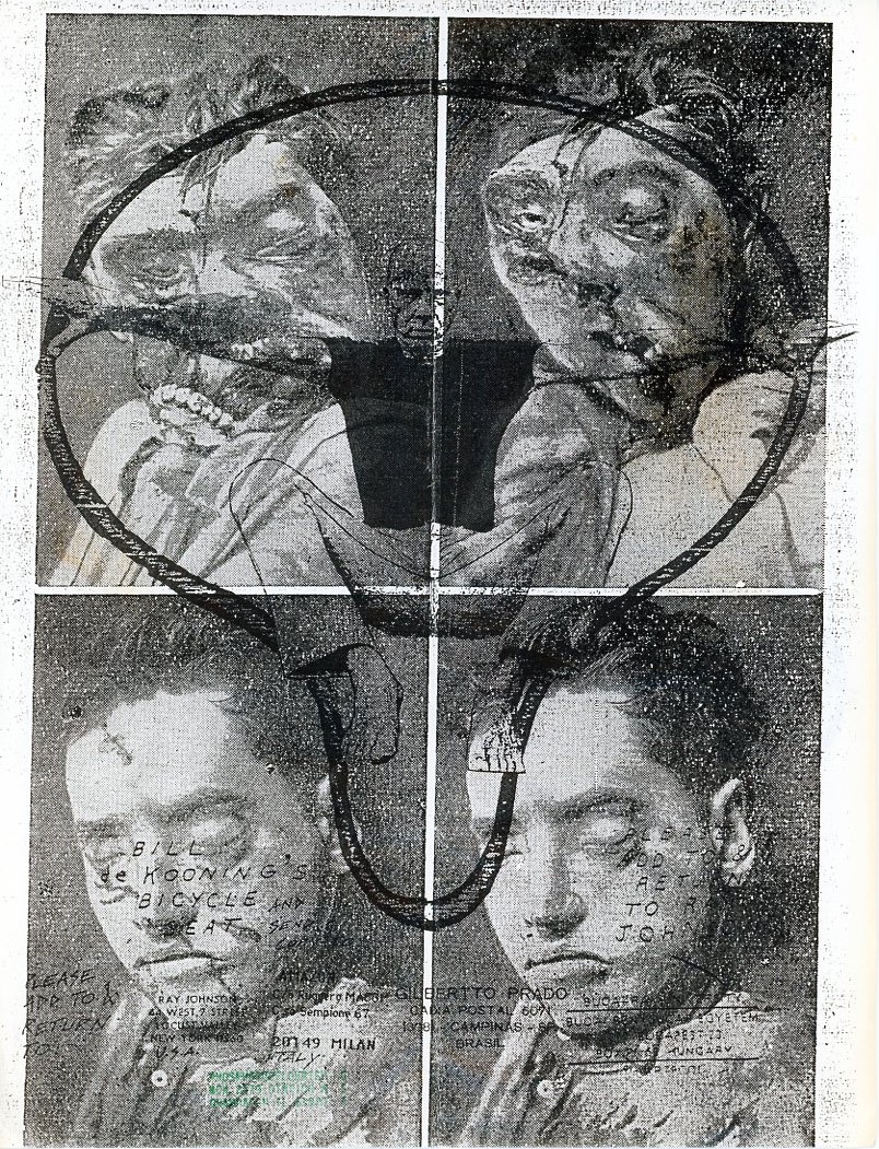 Ruggero Maggi scrive: Ray aveva già preso da anni l'abitudine di spedire sue immagini per posta invitando gli artisti ad intervenire nello spirito della New Correspondance School. Le "basi", inviate agli artisti, come le chiamo io, furono sostanzialmente quattro in cui si chiedeva agli artisti di intervenire e rispedire, “add to & return”, utilizzando le immagini che Johnson mi aveva inviato a metà degli anni '80. Mi sorprende ancora oggi che alcuni di questi fogli, dopo viaggi postali durati anni, ritornano al mittente!