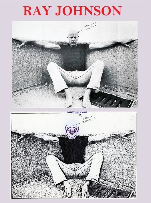 Precursore e anima ribelle, presenza enigmatica e convinto individualista, trasgressivo, estroverso, diseredato ed eremita dell’arte americana, spesso viene associato al gruppo Fluxus per il carattere solitamente minimal-concettuale dei suoi progetti tuttavia, dobbiamo segnalare che Ray Johnson non ha mai fatto parte del “Fluxus”, ma ha comunque condiviso le stesse problematiche e ”l’underground” sperimentale con molti artisti di questo raggruppamento.