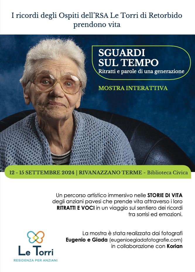 “Siamo felici di aver realizzato questo bel progetto grazie al lavoro di Eugenio e Giada, perché ha permesso ai nostri ospiti di raccontarsi e di diventare protagonisti di una mostra che non solo vuole raccontare storie autentiche e vissuti, ma che rappresenta un modo per dare voce agli anziani, troppo spesso dimenticati", commenta Francesco Campanello, Direttore Gestionale dell’RSA Le Torri di Retorbido. “La mostra coniuga fotografia e audio in un connubio davvero suggestivo, che consente ai visitatori di mettersi nei panni dei degli ospiti e percorrere una parte dei loro sentieri di vita”.