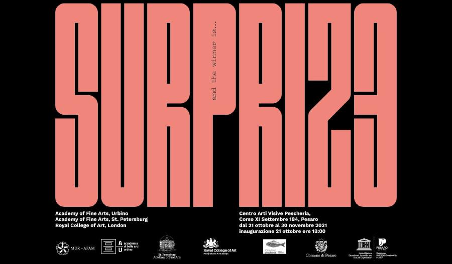 La Fondazione Pescheria di Pesaro e l'Accademia di Belle Arti di Urbino annunciano “Surprize 3”, terza edizione della collettiva di studenti provenienti dall'Accademia urbinate che, dopo il successo delle mostre precedenti, con ospiti gli allievi delle università di Istanbul nel 2019 e di Atene nel 2020, quest’anno si consorzia con due prestigiose istituzioni internazionali: l'Accademia di Belle Arti di San Pietroburgo e il Royal College of Art di Londra.
