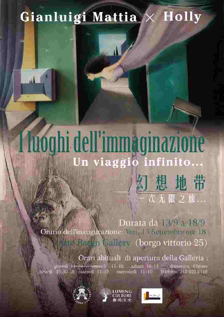La doppia personale che si terrà a Roma, dal 13 al 19 Settembre 2019, presso la Galleria Arte Borgo, va segnalata per la sua unicità e rilevanza, in quanto mette assieme e a confronto due artisti così distanti e per tradizioni culturali e per un forte gap generazionale : il maestro Gianluigi Mattia (ex titolare di cattedra presso le Accademie di Bologna, Firenze, Roma) e la giovane artista Cheng Huili che va considerata una delle più sicure promesse dell’arte cinese di questi anni.