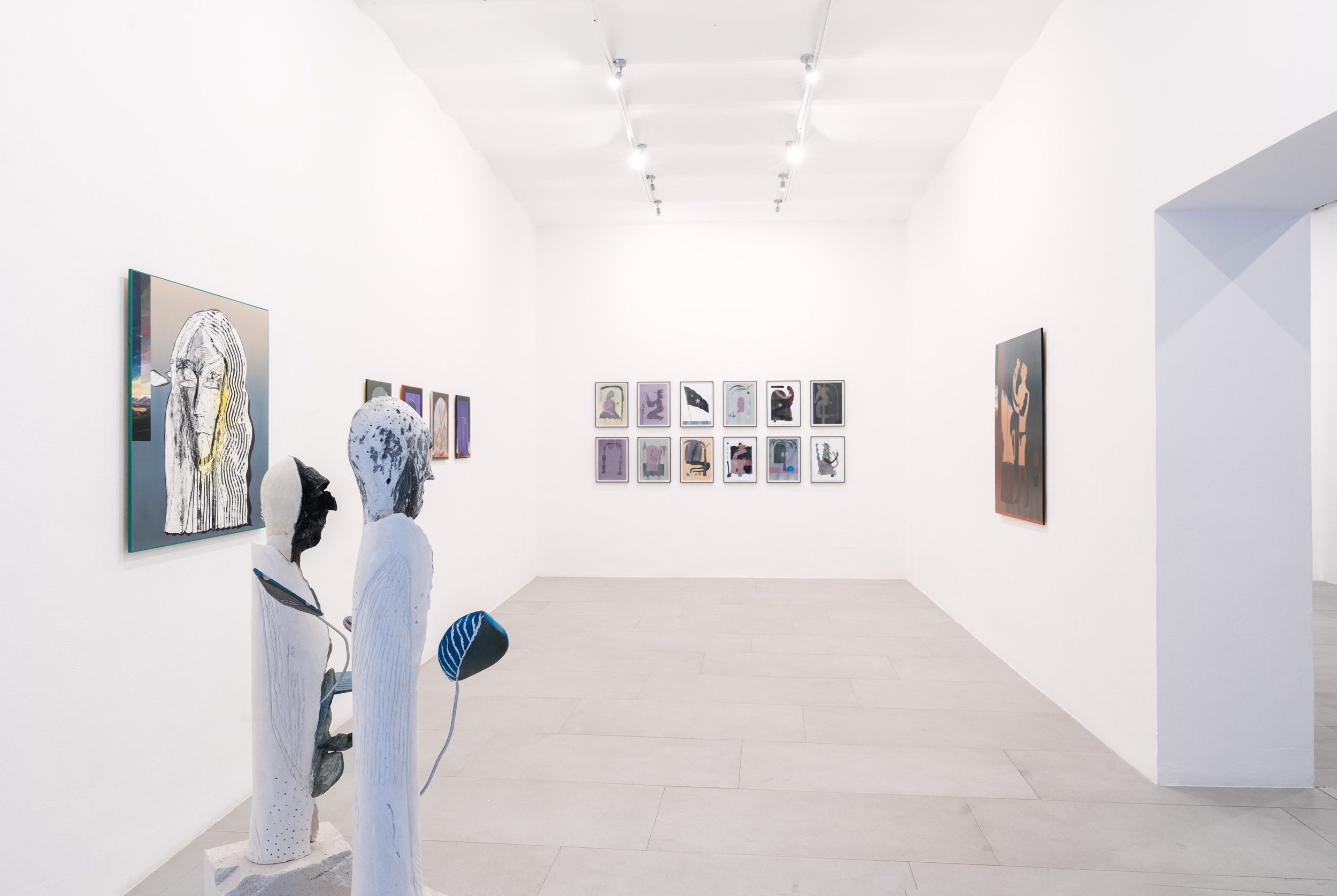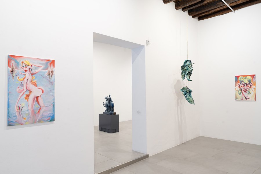 La pittura di Mattia Barbieri si rivela una pittura dove tutto si svolge su un unico piano, all’interno del quale elementi disparati ed eterogenei si dispongono spesso senza apparente gerarchia. La composizione, solida e a tratti virtuosistica, raccoglie sedimenti dell’immaginario collettivo, della storia dell’arte, della cultura popolare, ricombinati in una nuova veste. Gli elementi pittorici, non importa se appartenenti alla tradizione o ai più spinti neologismi visivi, sono utilizzati come parole che compongono un codice grammaticale utilizzato dall’artista per interagire con la pittura in quanto linguaggio, attraverso il quale ogni cosa viene decostruita, ristrutturata e riletta. La superficie dei dipinti risulta a volte movimentata da segni e incisioni, e una linea davvero esile demarca la distinzione tra la forma pittorica e quella scultorea, a cui l’artista spesso ricorre come altra modalità espressiva.