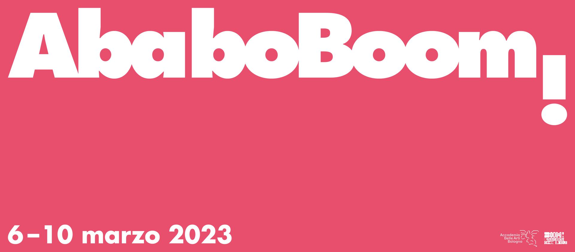 ABABO BOOM! comprende un ciclo di cinque incontri, tre mostre allestite negli spazi dell'Accademia di Belle Arti di Bologna e una quarta mostra presso l'Alliance Française di Bologna / Istituto di Cultura Germanica. Dal 6 al 9 marzo 2023, inoltre, l'Accademia sarà presente alla Bologna Children's Book Fair (Pad. 30, stand D37), mettendo in mostra i libri pubblicati da studentesse e studenti e una selezione delle tesi più meritevoli dei corsi di Fumetto e Illustrazione: un'insostituibile occasione per esplorare il mercato internazionale e avviare i primi contatti professionali. Mercoledì 8 marzo dalle 16 alle 18, all’interno dello stand D42, studentesse e studenti del Biennio interpreteranno la sagoma della città di Bologna, nell’ambito dell’evento Live Drawing Performanceorganizzato da Concorso Internazionale di Illustrazione BOit! promosso dalle associazioni CIVICO32 e MENOPERMENO.