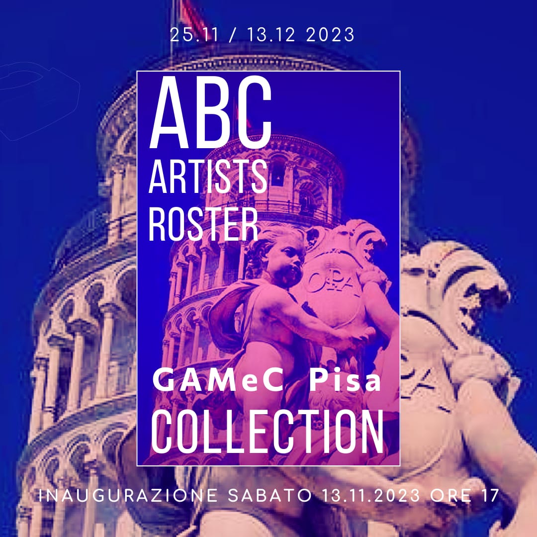 "ABC Artists roster / GAMeC PISA Collection" raccoglierà presso la sede storica sul lungarno Mediceo al numero 26, le opere (in rigoroso ordine alfabetico) di autori (non pisani) che nel corso di questi quasi 5 decenni hanno esposto o collaborato con questo storico spazio espositivo pisano.