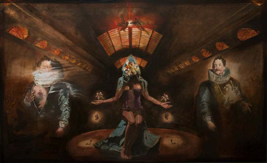 il significante che sottende alle opere di questo artista è impegnativo ,quasi criptico ,ma dall'indubbio fascino,anche se inquietante e poco leggibile ad un primo e superficiale impatto.Siamo in presenza ,infatti,di opere altamente avvolgenti ed immersive che sembrano quasi voler strappare l'osservatore da una posizione visivamente statica per immergerlo ,quasi con forza ,in un mondo altro. Figure e simboli ,apparentemente distanti,si fondono,infatti,in una sorta di gioco ermeneutico che apre la mente a scenari ,i più diversi,ma anche i più possibili.