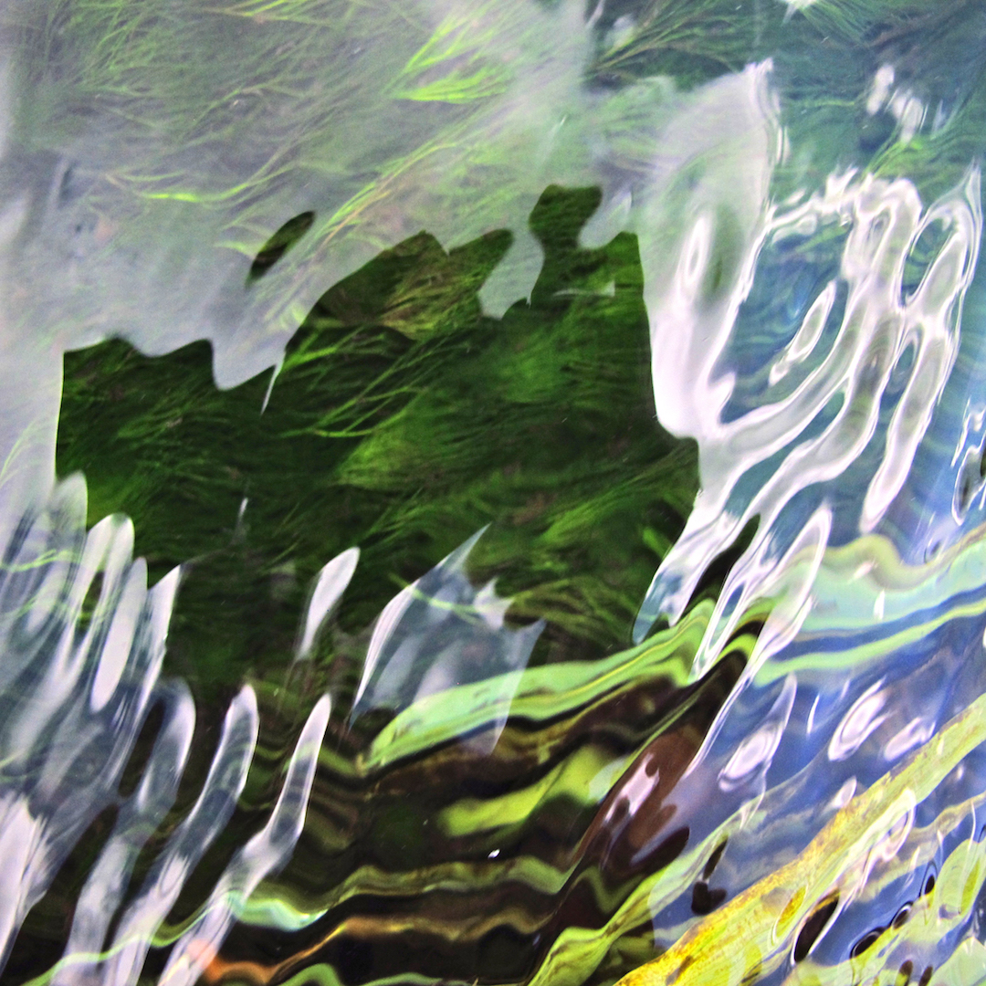 Le opere di questo ciclo sono fotografie realizzate su piani di acque dolci. Laghi e torrenti. Perlopiù trentini. Gli scatti talvolta sono realizzati con il movimento manuale intenzionale della fotocamera, o con parametri di controllo della macchina estremi o particolari. Questo agire rende il risultato assolutamente personale e determina uno stato d’animo “reale” dentro l’opera stessa. Svela la mistica essenza che la natura dell’acqua conserva. Esalta la vibrazione impressa dal suono del movimento còlto nel Kairos, quell’attimo inafferrabile che se fermato a tempo, origina forme che cangiano a seconda di chi le osserva. Lenti deformanti. Lenti espansive. Lenti sfaccettate sono strati di geometrie che emergono in giochi di continue forme inaspettate. Riflessi, i quali doppi degli stessi edificano immagini di volti, forse anime di qualche spiritello inatteso, come effigi di fiere ruggenti dalla forza primordiale, dalla nobiltà selvaggia. Sprigionano l’energia intrinseca dell’acqua che vibra tra mito e realtà. Curioso che in sanscrito il termine suono si esprima con Nada-Braham. Nada significa “ampio fiume” e Braham, “sorgente”. Ovvero, “il suono è alla fonte del fiume”. Forse non è un caso che Olzer abbia la rispondenza di cogliere questo particolare moto sonoro e manifestarlo nelle sue opere. In quanto musicista, con un attento studio della fisica del suono, dell’acustica e psicoacustica, mette in rilievo lo spettro stesso acustico che l’unità acquea genera. Una sorta di diagramma visivo che rappresenta pressioni sonore in relazione alla frequenza. E, diviene il prisma che separa la luce in colori.