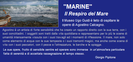 Il Museo Ugo Guidi – MUG di Forte dei Marmi per la 202° mostra presenta le opere del pittore Agostino Calcagno dal titolo “Il respiro del mare”, in cui l’artista nato a Cogoleto (Genova) propone le sue opere pittoriche La mostra è introdotta da Vittorio Guidi con presentazione critica di Lodovico Gierut e Marilena Cheli Tomei.