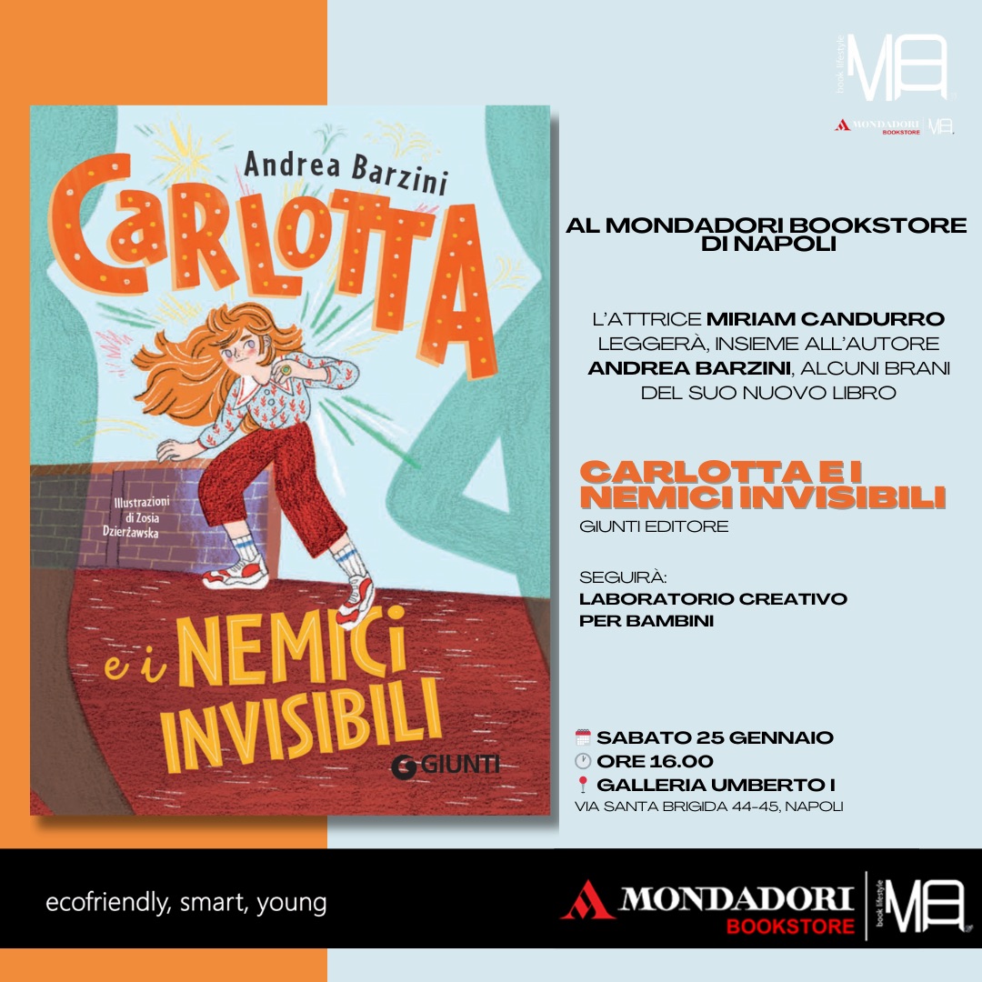 Sabato 25 gennaio 2025 alle ore 16.00, la libreria Mondadori Bookstore di Napoli ospiterà Andrea Barzini, rinomato regista, sceneggiatore, documentarista, scrittore e artista, che presenterà il suo nuovo libro per l’infanzia scolare “Carlotta e i nemici invisibili”.