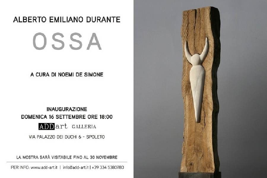 Si inaugura domenica 16 settembre alle ore 18 presso la galleria ADD-art di Spoleto “Ossa”, la personale di Andrea Emiliano Durante. “Ossa” è un progetto a cui l’artista ha lavorato per più di un anno e che per la prima volta viene condiviso con il pubblico. Una ricerca sui materiali ‘primitivi’, il marmo il legno il ferro, che hanno da sempre plasmato idoli, guerrieri e templi: archetipi che Durante esplora in chiave contemporanea.