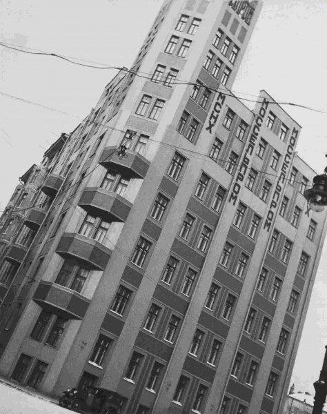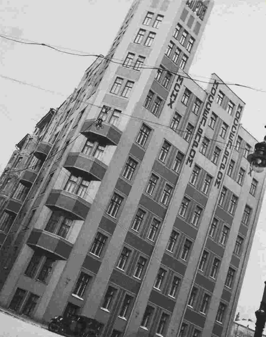 La nuova Mosca è documentata con le fotografie della costruzione del Parco della Cultura e della asfaltatura delle strade di Leningrado, e con le immagini di edifici simbolo, quali quello progettato da Ginzburg sul viale Novinski e quello del Mosselprom.
