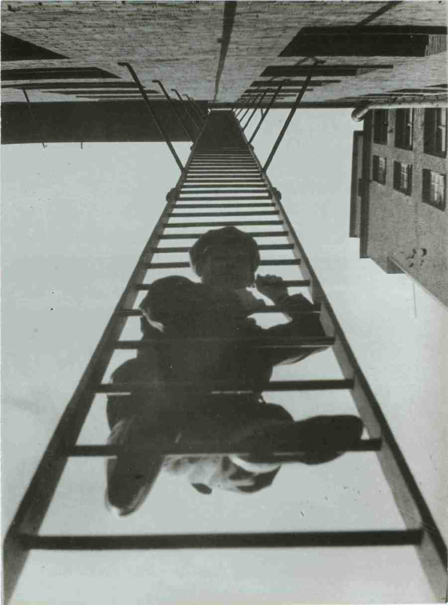 L’itinerario di mostra prosegue con una selezione di immagini sulla realtà industriale raccolte nelle short series: Fabbrica di automobili AMO del 1929, dedicata al settore dell’industria automobilistica; MoGES (Centrale Elettrica di Mosca), che documenta la nuova centrale elettrica eretta nel 1927 e il lavoro degli operai. La verticalità delle moderne costruzioni viene ripresa nelle fotografie di architetture e particolari costruttivi, come la celebre Scala antincendio (con un uomo) del 1925.