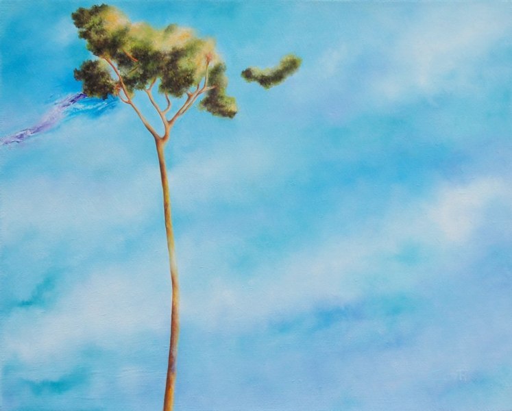 Riccardo Corti - Firenze, 1952 - raffigura esili pini e arance in sezione in oli dalla forte valenza simbolica, nell’ambito di una pittura volta a indagare il sensibile con lirismo.