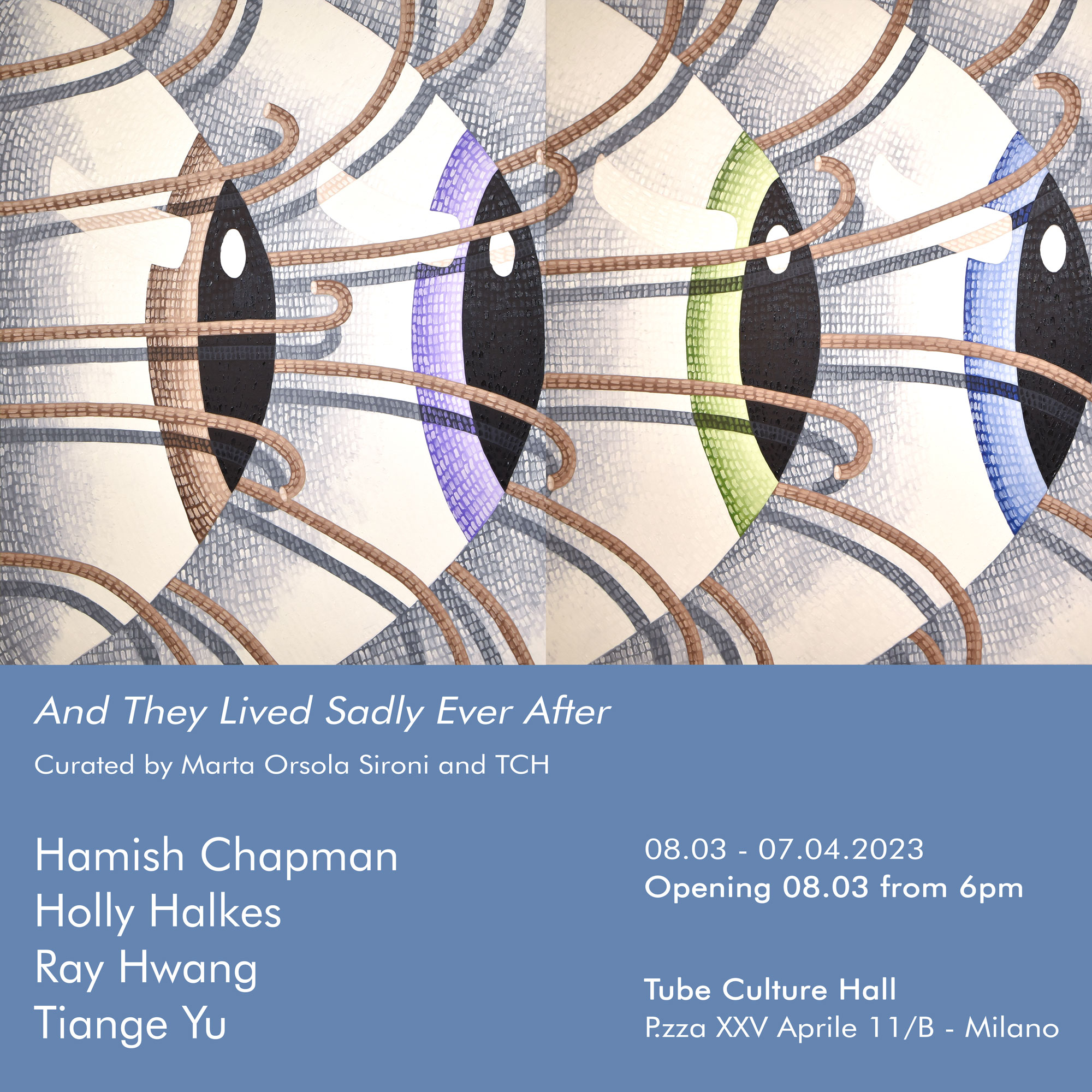 Collettiva degli artisti emergenti Hamish Chapman, Holly Halkes, Ray Hwang, Tiange Yu. Le loro opere sono accomunate da uno spirito umoristico con cui affrontare le vicessitudini quotidiane. La risposta alle aspettative proposta da questa mostra è l’umorismo. Prendere la vita più alla leggera e di traverso, guardando le cose dal loro lato comico può liberarci dal macigno delle aspettative insoddisfatte. Umorismo e ironia, inoltre, sono potenti tool comunicativi, che ci permettono di accettare e assimilare la realtà. Forse è vero che una risata salverà il mondo. Il mio consiglio? Smettete di guardare film romantici e accendete i Simpson. Nel 2023 possiamo ancora credere alle favole, ma non dobbiamo necessariamente prenderle sul serio. Qualcuno una volta ha detto che la vita ha un modo buffo di coglierti di sorpresa e forse a volte è meglio essere ironici.