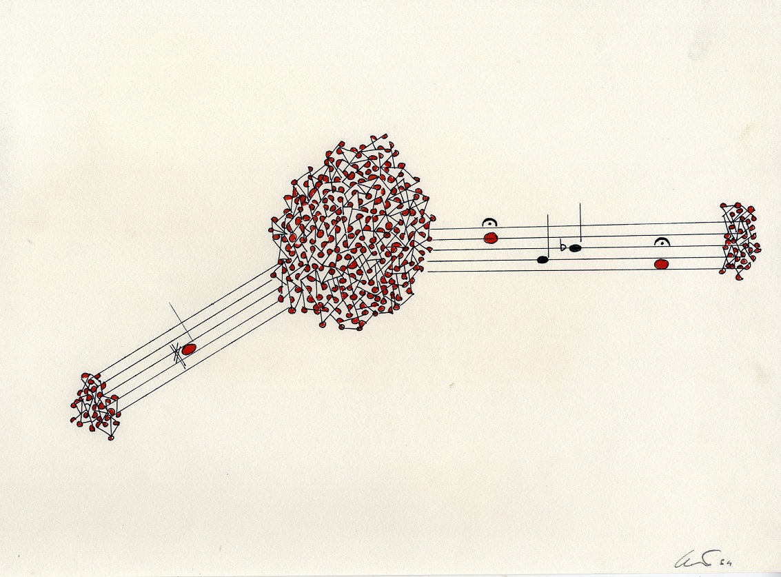 "Sound Images" è una mostra dedicata alle opere visive di Andrea Centazzo, lavori grafici e pittorici nati da e attorno alla notazione musicale che l’artista ha iniziato a produrre negli anni 80, e che sono stati esposti in importanti personali e collettive nelle maggiori gallerie italiane ed estere.