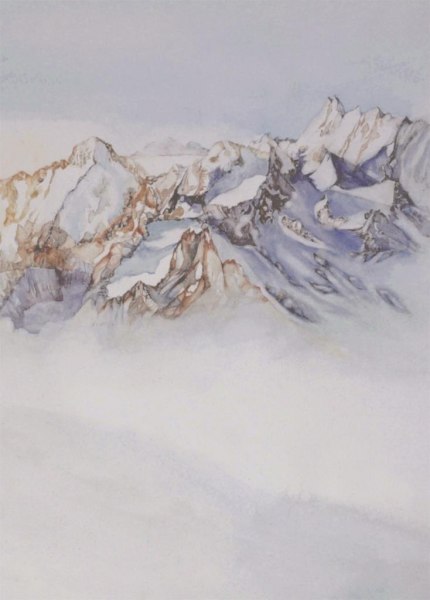 Affiorano dalla nebbia, proprio così come sono stati dipinti. Ambienti naturali, laghi fermi o cime non più tempestose, colti en plein air, in quegli angoli ancora incontaminati in cui si manifesta l’“Anima del Mondo”.