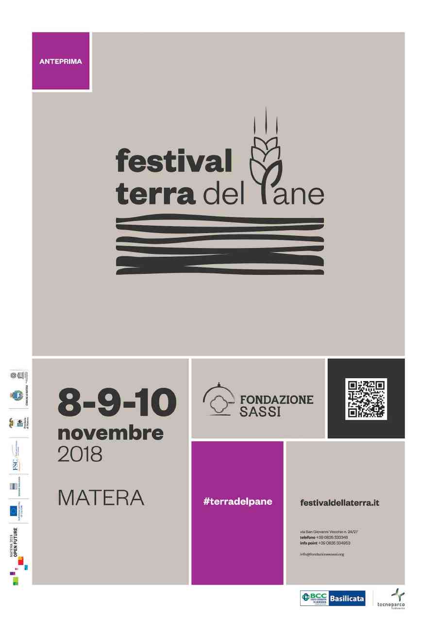 Organizzata e promossa da Fondazione Sassi, in coproduzione con la Fondazione Matera-Basilicata 2019, l'anteprima del Festival La Terra del pane è un progetto per Matera 2019, tema: Radici e Percorsi.