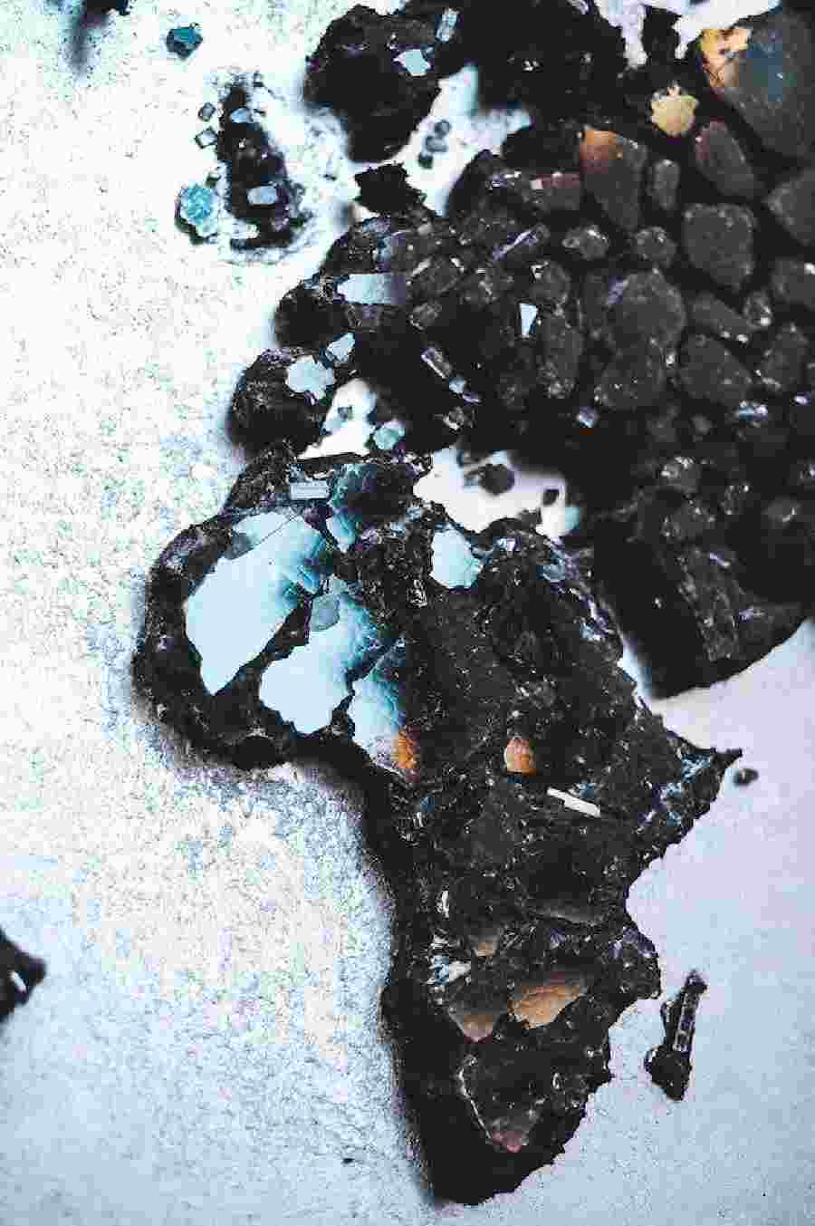 Fondamentale iniziare questo excursus dall’opera che dà il titolo alla mostra, in realtà la prima di una nuova serie di lavori, nonché capofila di un inarrestabile processo creativo in cui Antonella ha sviscerato, taglio dopo taglio e bruciatura dopo bruciatura, un tema che ha fatto interamente e profondamente suo e che ha portato alla realizzazione di decine di esemplari, l’uno diverso dall’altro ma tutti parte integrante dello stesso pensiero. Il Mondo a pezzi le ha così permesso di guardare il nostro pianeta da diversi punti di vista: srotolandolo come fosse un’antica carta geografica, ma anche concentrandosi su singoli continenti o mirando a specifiche aree da angolazioni inusuali, riconsegnandoci -anche concettualmente- un mondo poco “riconoscibile”, proprio perché se la forma rimane invariata -e come potrebbe essere altrimenti?- è l’approccio che cambia. Ed è proprio questo il punto: riconoscere la nostra realtà come una piccola, infinitesimale parte del tutto e capire, finalmente, che se il mondo va in pezzi non ci sarà salvezza per alcuno di noi. In questi lavori il mondo è nero, maleodorante nella sua fase di lavorazione, bruciato, tagliato, modellato quando è ancora caldo, filante, gommoso. Il vetro o cristallo, con la sua idea di fragilità da un lato e di pericolo dall’altro, si ricompatta sulla superficie martoriata, sottolineando ancora una volta quel “maneggiare con cura” a cui non possiamo più sottrarci. (....)