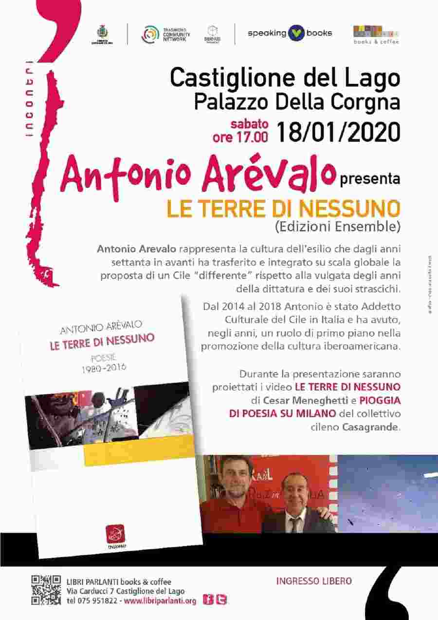 “Le terre di nessuno”, una serie di testi poetici dello scrittore cileno Antonio Arévalo, personalità di rilievo nel mondo dell’arte degli ultimi decenni tra l’Italia, sua terra di adozione, e il mondo iberoamericano, e rappresentante di quella cultura dell’esilio che dagli anni settanta in avanti ha trasferito e integrato su scala globale la proposta di un Cile “differente” rispetto alla vulgata degli anni della dittatura e dei suoi strascichi. È una cultura che successivamente, dopo la fine del regime, ha incarnato le istanze di una migrazione intellettuale che ha sempre portato con sé denuncia e libertà, rivendicazione di diritti e doveri, ma soprattutto una sete di confronto e ricerca nei più diversi ambiti artistici. Arévalo incarna tutto questo, in una parabola che continua nell’attualità alla luce di una costante presenza sulla scena dell’organizzazione artistica, della promozione di mostre di caratura internazionale e di altri eventi legati all’identità cilena in Italia e nel mondo; e, naturalmente, nel vivo di una produzione critica e creativa che trova nel passato e nel presente le ragioni di una militanza e di una sperimentazione sempreverdi.